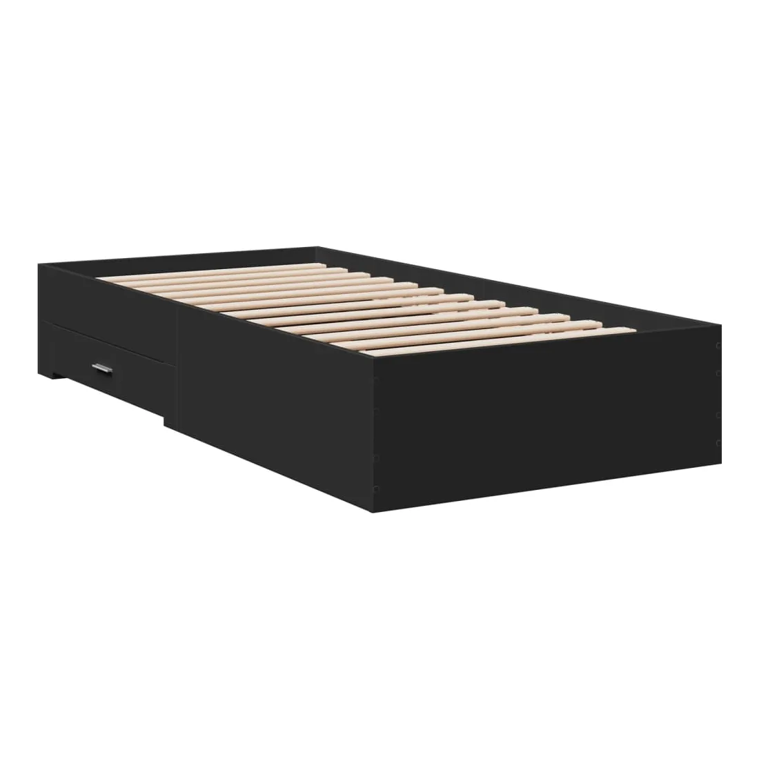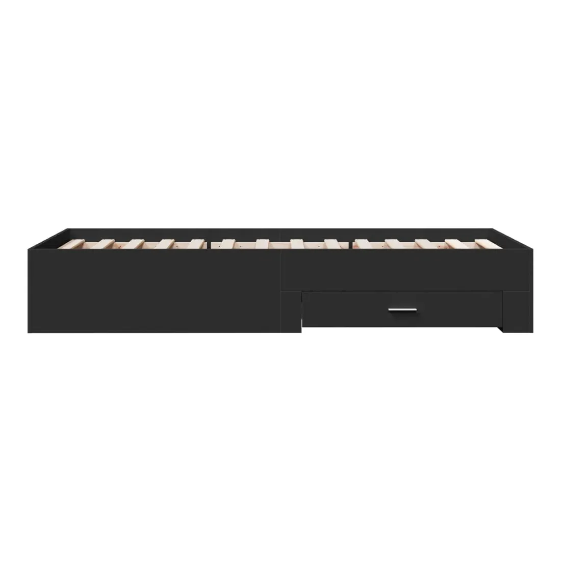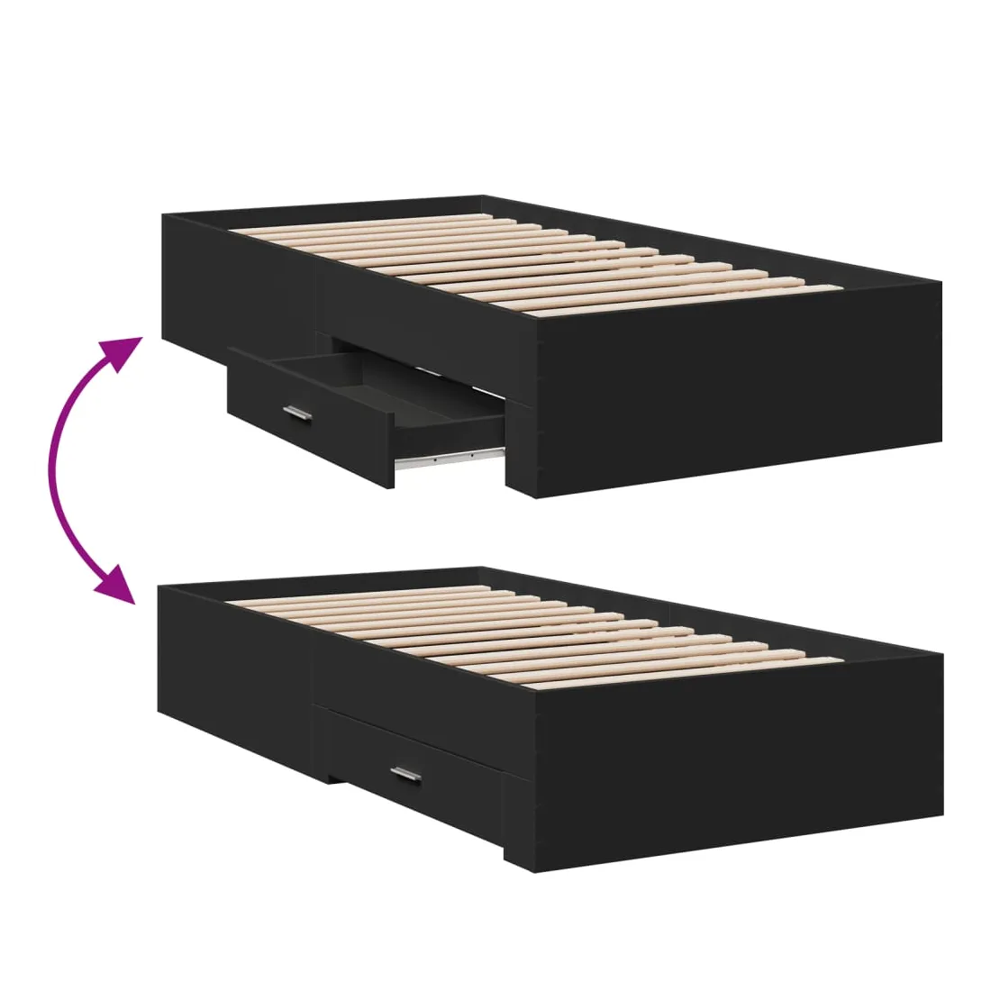 Ajoutez une touche moderne à votre chambre à coucher avec ce cadre de lit avec tiroirs ! Il apportera une touche pratique et décorative à votre espace de vie. Matériau durable : le cadre de lit est fabriquée en bois d'ingénierie. Le bois d'ingénierie est d'une qualité exceptionnelle avec une surface lisse et présente également de la résistance, de la stabilité et de la résistance à l'humidité.Lattes robustes : les lattes de contreplaqué assurent une bonne répartition du poids, garantissant que le matelas reste en place à chaque torsion de votre corps pendant le sommeil.Fonction de rangement : les tiroirs de lit inclus offrent suffisamment d'espace de rangement pour ranger vos articles essentiels, gardant votre pièce propre et bien rangée. Bon à savoir :Un matelas n'est pas inclus avec ce lit. Nous offrons une sélection variée de matelas. Vous pouvez consulter notre boutique pour trouver un matelas assorti.