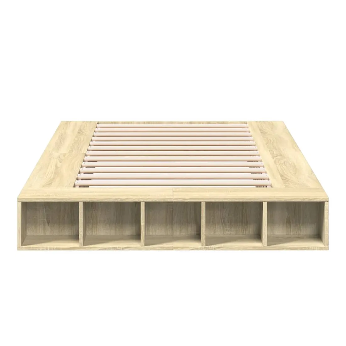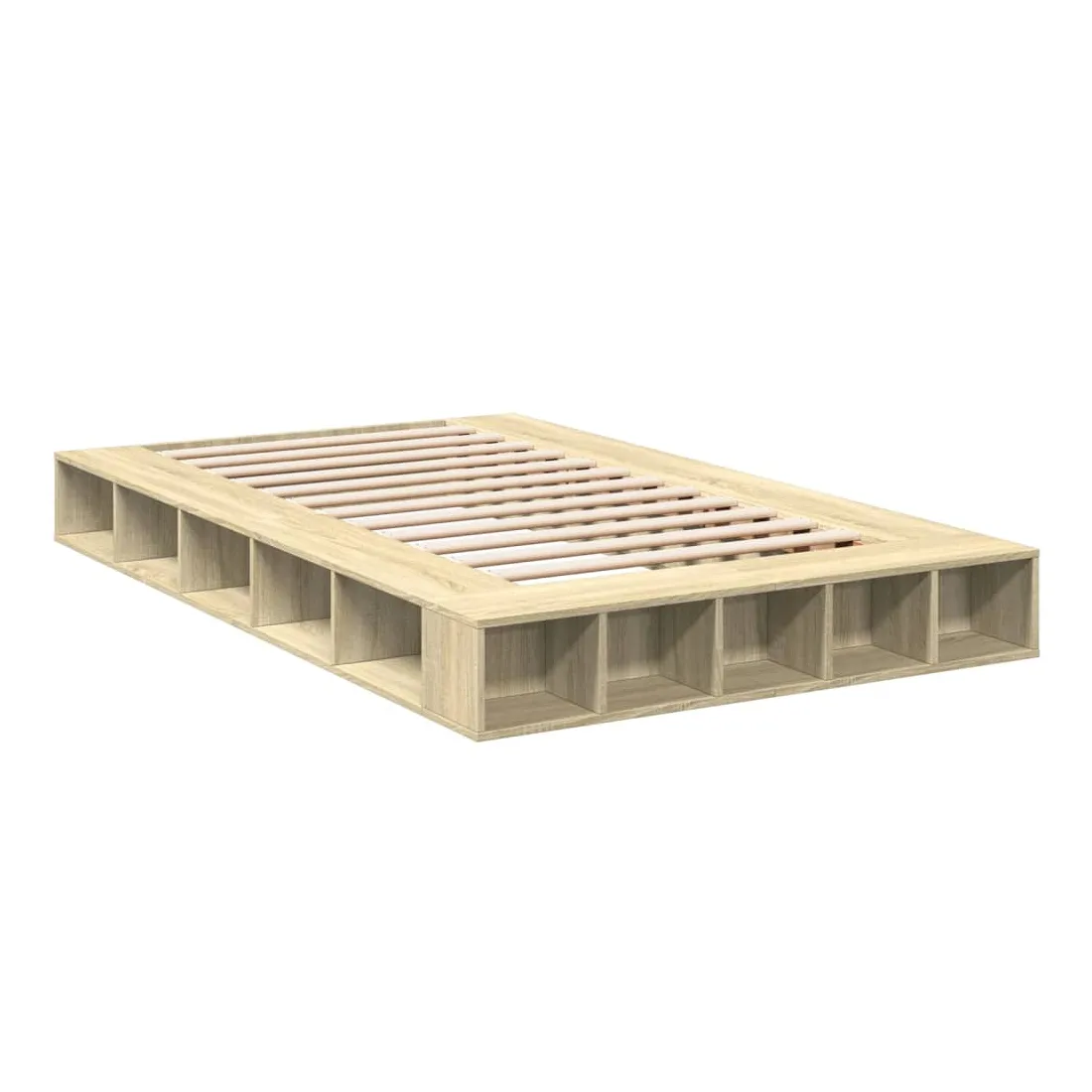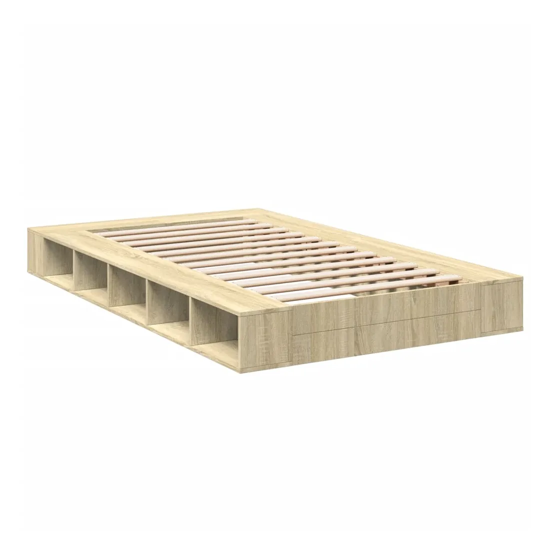 Obtenez une meilleure nuit de sommeil reposante grâce à ce cadre de lit ! Il est un supplément accueillant à toute chambre à coucher. Matériau durable : le cadre de lit est fabriquée en bois d'ingénierie. Le bois d'ingénierie est d'une qualité exceptionnelle avec une surface lisse et présente également de la résistance, de la stabilité et de la résistance à l'humidité.Lattes pour un soutien optimal : le cadre de lit est complété par des lattes pour offrir un soutien et une respirabilité essentiels à votre matelas.Fonction de rangement : ce cadre de lit offre des compartiments ouverts pour garder vos magazines, livres, jouets et autres petits objets bien organisés. Bon à savoir :Un matelas n'est pas inclus avec ce lit. Nous offrons une sélection variée de matelas. Vous pouvez consulter notre boutique pour trouver un matelas assorti.