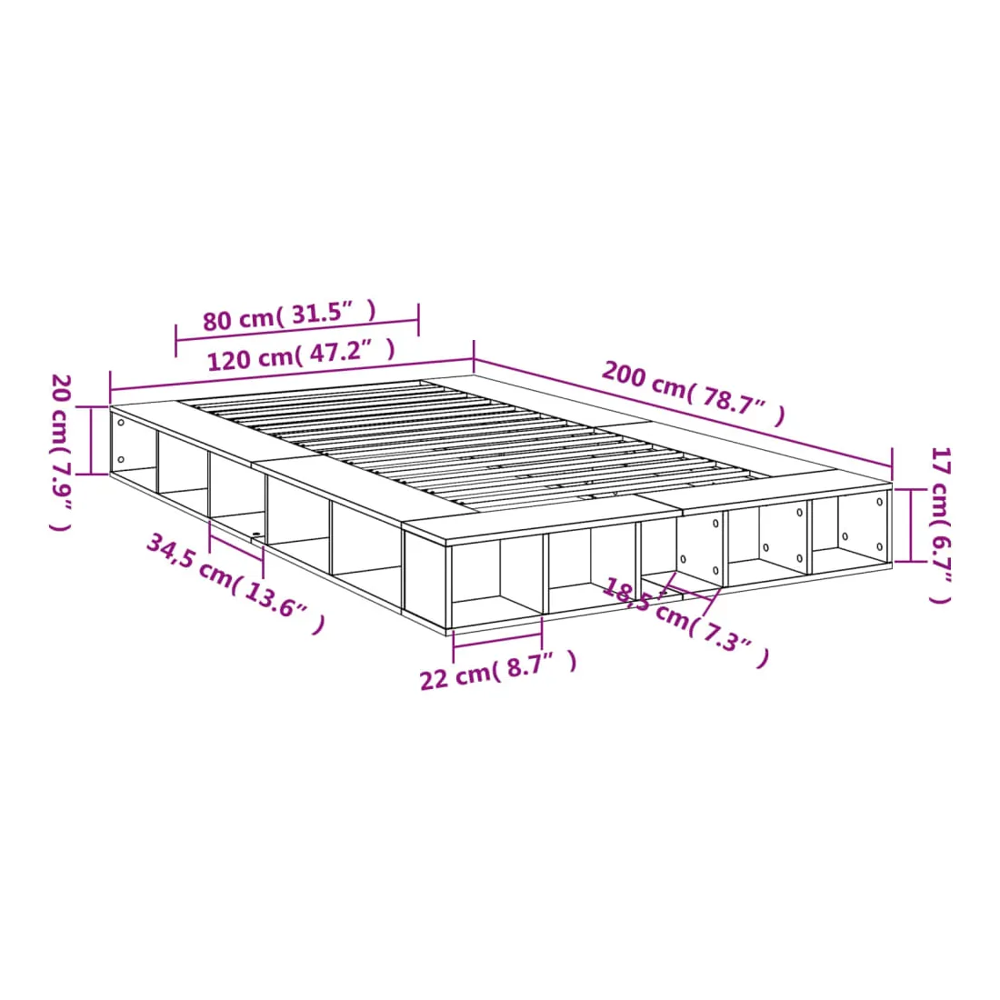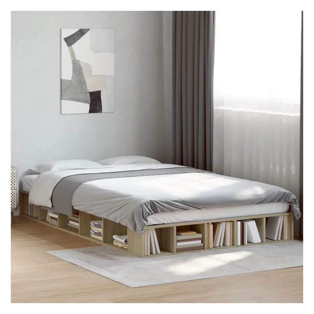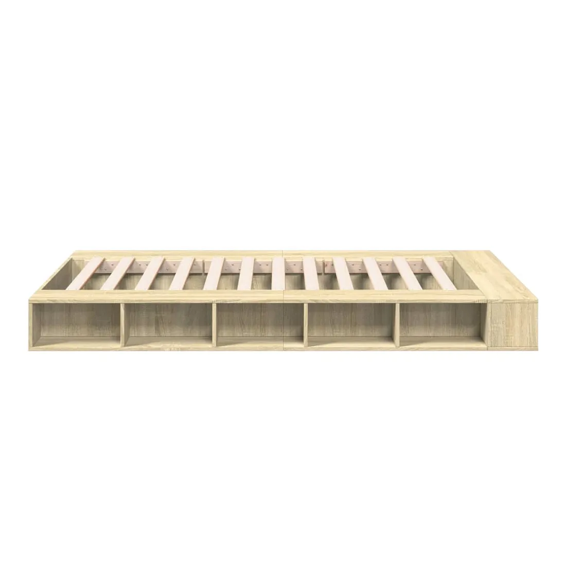 Obtenez une meilleure nuit de sommeil reposante grâce à ce cadre de lit ! Il est un supplément accueillant à toute chambre à coucher. Matériau durable : le cadre de lit est fabriquée en bois d'ingénierie. Le bois d'ingénierie est d'une qualité exceptionnelle avec une surface lisse et présente également de la résistance, de la stabilité et de la résistance à l'humidité.Lattes pour un soutien optimal : le cadre de lit est complété par des lattes pour offrir un soutien et une respirabilité essentiels à votre matelas.Fonction de rangement : ce cadre de lit offre des compartiments ouverts pour garder vos magazines, livres, jouets et autres petits objets bien organisés. Bon à savoir :Un matelas n'est pas inclus avec ce lit. Nous offrons une sélection variée de matelas. Vous pouvez consulter notre boutique pour trouver un matelas assorti.