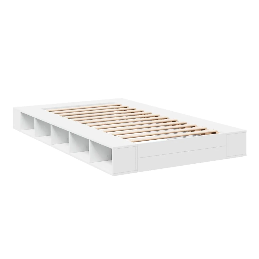 Obtenez une meilleure nuit de sommeil reposante grâce à ce cadre de lit ! Il est un supplément accueillant à toute chambre à coucher. Matériau durable : le cadre de lit est fabriquée en bois d'ingénierie. Le bois d'ingénierie est d'une qualité exceptionnelle avec une surface lisse et présente également de la résistance, de la stabilité et de la résistance à l'humidité.Lattes pour un soutien optimal : le cadre de lit est complété par des lattes pour offrir un soutien et une respirabilité essentiels à votre matelas.Fonction de rangement : ce cadre de lit offre des compartiments ouverts pour garder vos magazines, livres, jouets et autres petits objets bien organisés. Bon à savoir :Un matelas n'est pas inclus avec ce lit. Nous offrons une sélection variée de matelas. Vous pouvez consulter notre boutique pour trouver un matelas assorti.