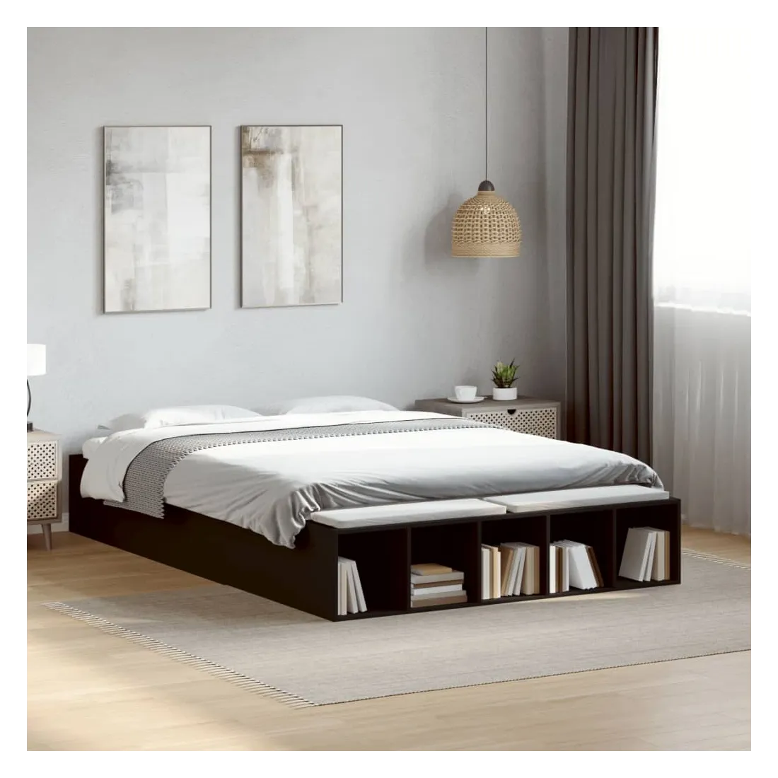 Ajoutez une touche moderne à votre chambre à coucher avec ce cadre de lit ! Il apportera une touche pratique et décorative à votre espace de vie. Matériau durable : le cadre de lit est fabriquée en bois d'ingénierie. Le bois d'ingénierie est d'une qualité exceptionnelle avec une surface lisse et présente également de la résistance, de la stabilité et de la résistance à l'humidité.Lattes robustes : les lattes de contreplaqué assurent une bonne répartition du poids, garantissant que le matelas reste en place à chaque torsion de votre corps pendant le sommeil.Fonction de rangement : les compartiments de lit inclus offrent un grand espace de rangement pour ranger vos articles essentiels, gardant votre chambre propre et bien rangée. Bon à savoir :Un matelas n'est pas inclus avec ce lit. Nous offrons une sélection variée de matelas. Vous pouvez consulter notre boutique pour trouver un matelas assorti.