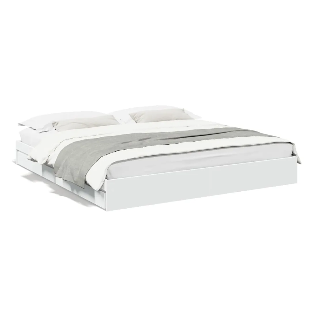 Ajoutez une touche moderne à votre chambre à coucher avec ce cadre de lit avec tiroirs ! Il apportera une touche pratique et décorative à votre espace de vie. Matériau durable : le cadre de lit est fabriquée en bois d'ingénierie. Le bois d'ingénierie est d'une qualité exceptionnelle avec une surface lisse et présente également de la résistance, de la stabilité et de la résistance à l'humidité.Lattes robustes : les lattes de contreplaqué assurent une bonne répartition du poids, garantissant que le matelas reste en place à chaque torsion de votre corps pendant le sommeil.Fonction de rangement : les tiroirs de lit inclus offrent suffisamment d'espace de rangement pour ranger vos articles essentiels, gardant votre pièce propre et bien rangée. Bon à savoir :Un matelas n'est pas inclus avec ce lit. Nous offrons une sélection variée de matelas. Vous pouvez consulter notre boutique pour trouver un matelas assorti.