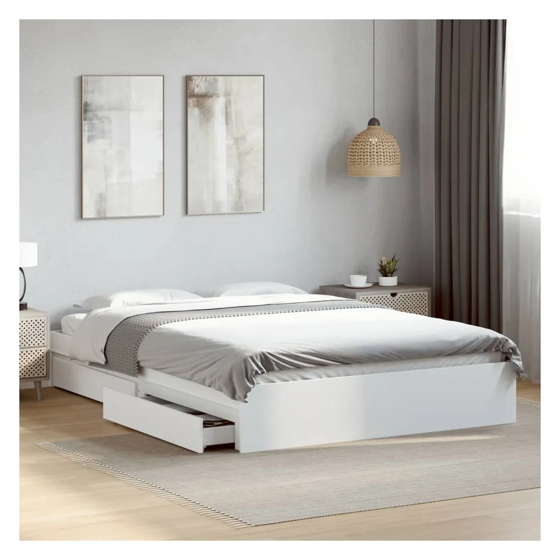 Ajoutez une touche moderne à votre chambre à coucher avec ce cadre de lit avec tiroirs ! Il apportera une touche pratique et décorative à votre espace de vie. Matériau durable : le cadre de lit est fabriquée en bois d'ingénierie. Le bois d'ingénierie est d'une qualité exceptionnelle avec une surface lisse et présente également de la résistance, de la stabilité et de la résistance à l'humidité.Lattes robustes : les lattes de contreplaqué assurent une bonne répartition du poids, garantissant que le matelas reste en place à chaque torsion de votre corps pendant le sommeil.Fonction de rangement : les tiroirs de lit inclus offrent suffisamment d'espace de rangement pour ranger vos articles essentiels, gardant votre pièce propre et bien rangée. Bon à savoir :Un matelas n'est pas inclus avec ce lit. Nous offrons une sélection variée de matelas. Vous pouvez consulter notre boutique pour trouver un matelas assorti.