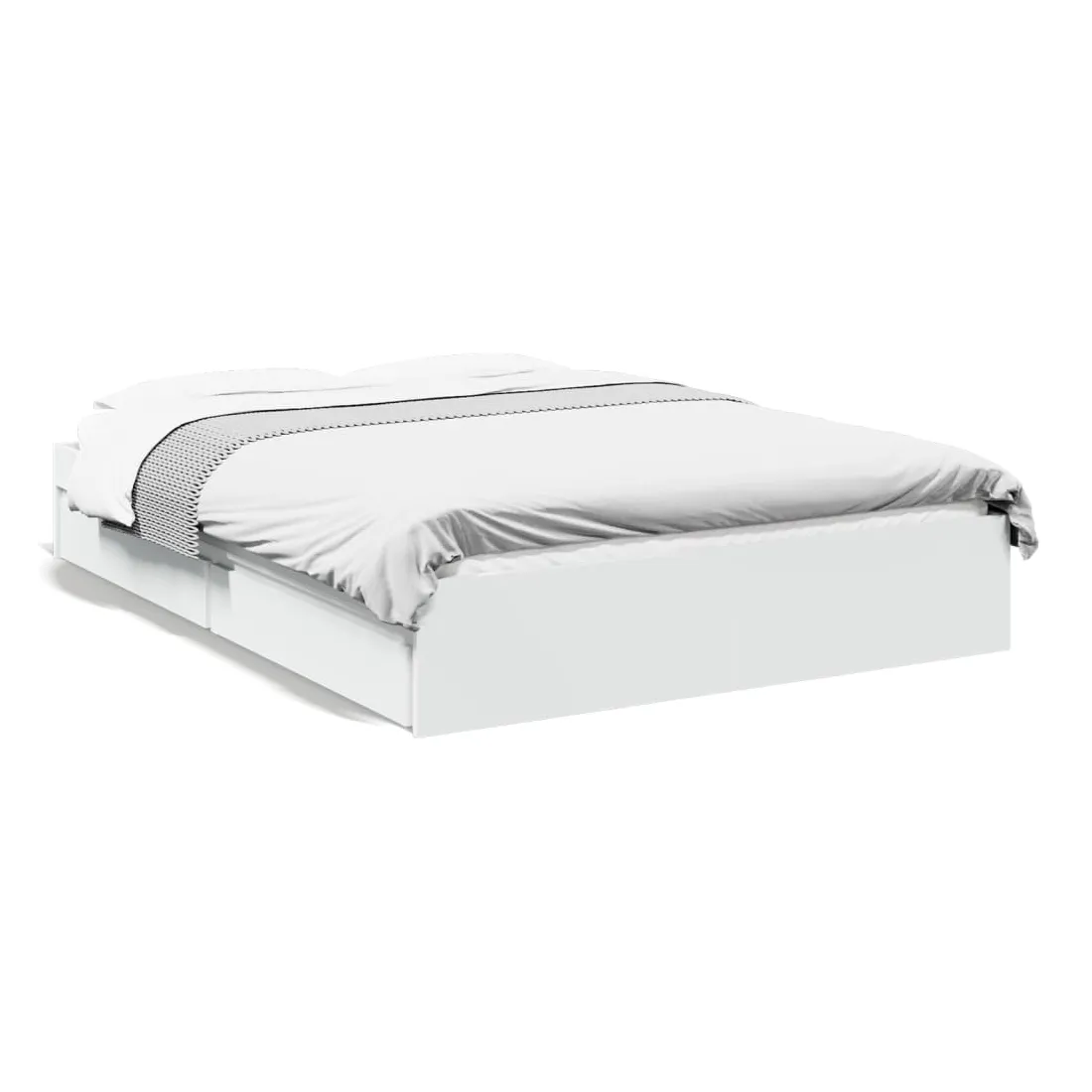 Ajoutez une touche moderne à votre chambre à coucher avec ce cadre de lit avec tiroirs ! Il apportera une touche pratique et décorative à votre espace de vie. Matériau durable : le cadre de lit est fabriquée en bois d'ingénierie. Le bois d'ingénierie est d'une qualité exceptionnelle avec une surface lisse et présente également de la résistance, de la stabilité et de la résistance à l'humidité.Lattes robustes : les lattes de contreplaqué assurent une bonne répartition du poids, garantissant que le matelas reste en place à chaque torsion de votre corps pendant le sommeil.Fonction de rangement : les tiroirs de lit inclus offrent suffisamment d'espace de rangement pour ranger vos articles essentiels, gardant votre pièce propre et bien rangée. Bon à savoir :Un matelas n'est pas inclus avec ce lit. Nous offrons une sélection variée de matelas. Vous pouvez consulter notre boutique pour trouver un matelas assorti.