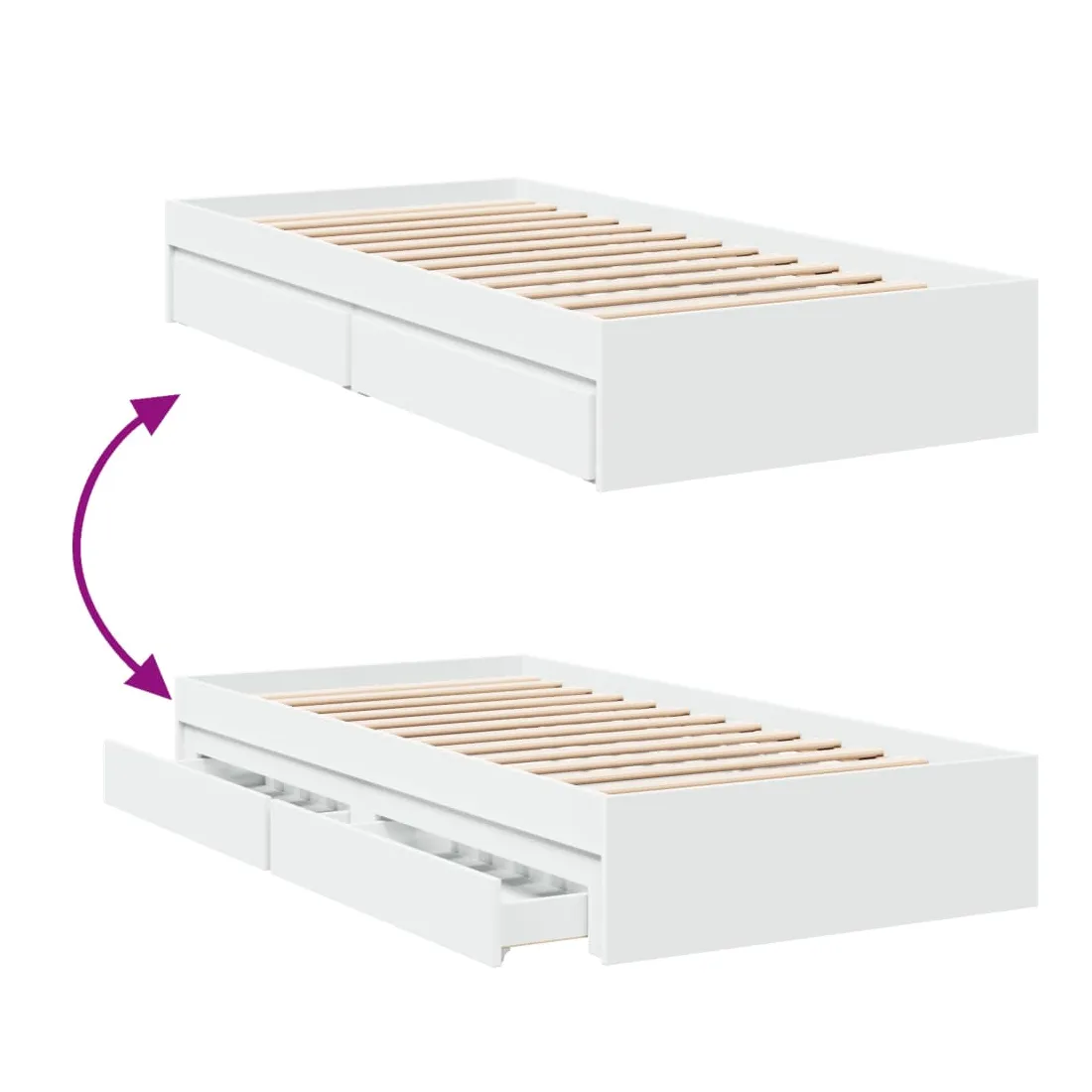 - Dimensions des tiroirs de lit (chacun) : 95,5 x 35 x 14 cm (L x l x H)