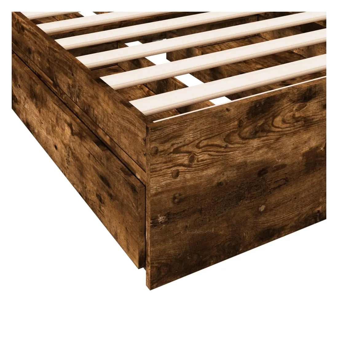 Ajoutez une touche moderne à votre chambre à coucher avec ce cadre de lit avec tiroirs ! Il apportera une touche pratique et décorative à votre espace de vie. Matériau durable : le cadre de lit est fabriquée en bois d'ingénierie. Le bois d'ingénierie est d'une qualité exceptionnelle avec une surface lisse et présente également de la résistance, de la stabilité et de la résistance à l'humidité.Lattes robustes : les lattes de contreplaqué assurent une bonne répartition du poids, garantissant que le matelas reste en place à chaque torsion de votre corps pendant le sommeil.Fonction de rangement : les tiroirs de lit inclus offrent suffisamment d'espace de rangement pour ranger vos articles essentiels, gardant votre pièce propre et bien rangée. Bon à savoir :Un matelas n'est pas inclus avec ce lit. Nous offrons une sélection variée de matelas. Vous pouvez consulter notre boutique pour trouver un matelas assorti.
