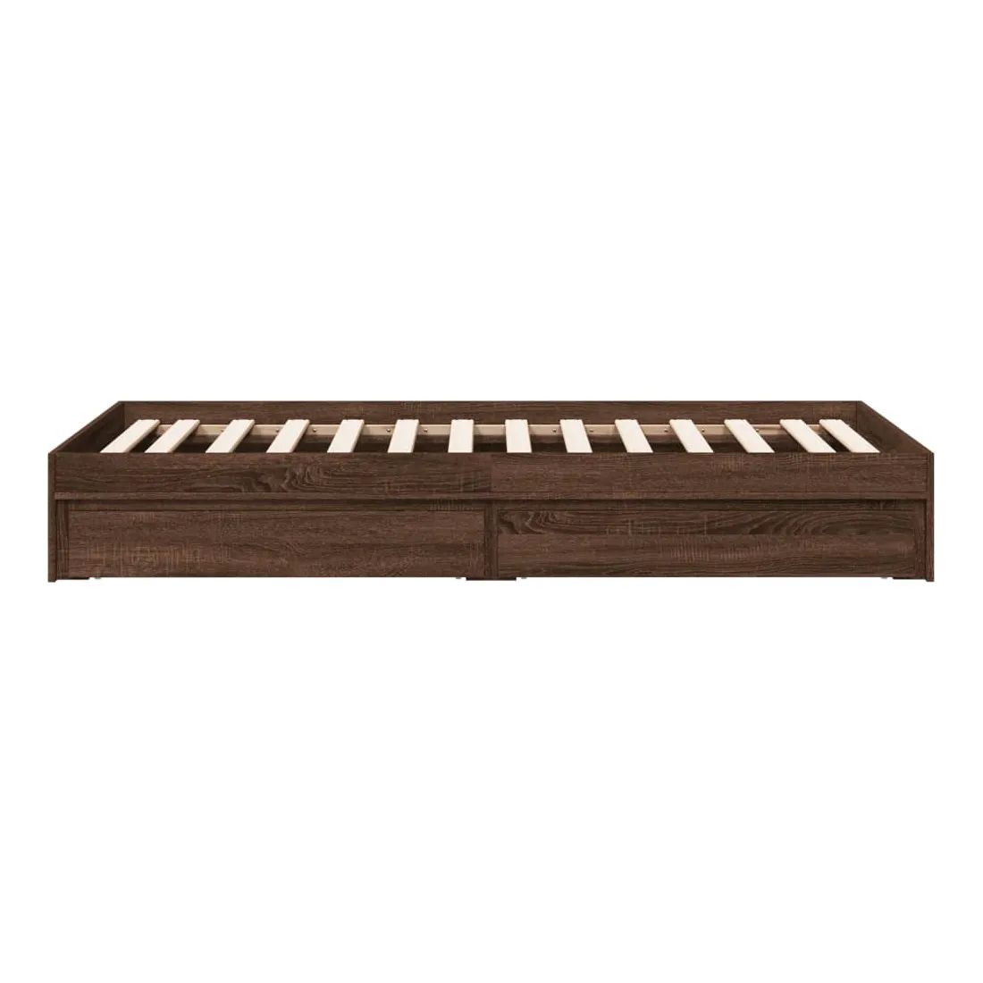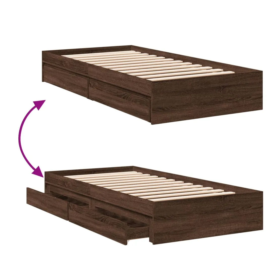 Ajoutez une touche moderne à votre chambre à coucher avec ce cadre de lit avec tiroirs ! Il apportera une touche pratique et décorative à votre espace de vie. Matériau durable : le cadre de lit est fabriquée en bois d'ingénierie. Le bois d'ingénierie est d'une qualité exceptionnelle avec une surface lisse et présente également de la résistance, de la stabilité et de la résistance à l'humidité.Lattes robustes : les lattes de contreplaqué assurent une bonne répartition du poids, garantissant que le matelas reste en place à chaque torsion de votre corps pendant le sommeil.Fonction de rangement : les tiroirs de lit inclus offrent suffisamment d'espace de rangement pour ranger vos articles essentiels, gardant votre pièce propre et bien rangée. Bon à savoir :Un matelas n'est pas inclus avec ce lit. Nous offrons une sélection variée de matelas. Vous pouvez consulter notre boutique pour trouver un matelas assorti.