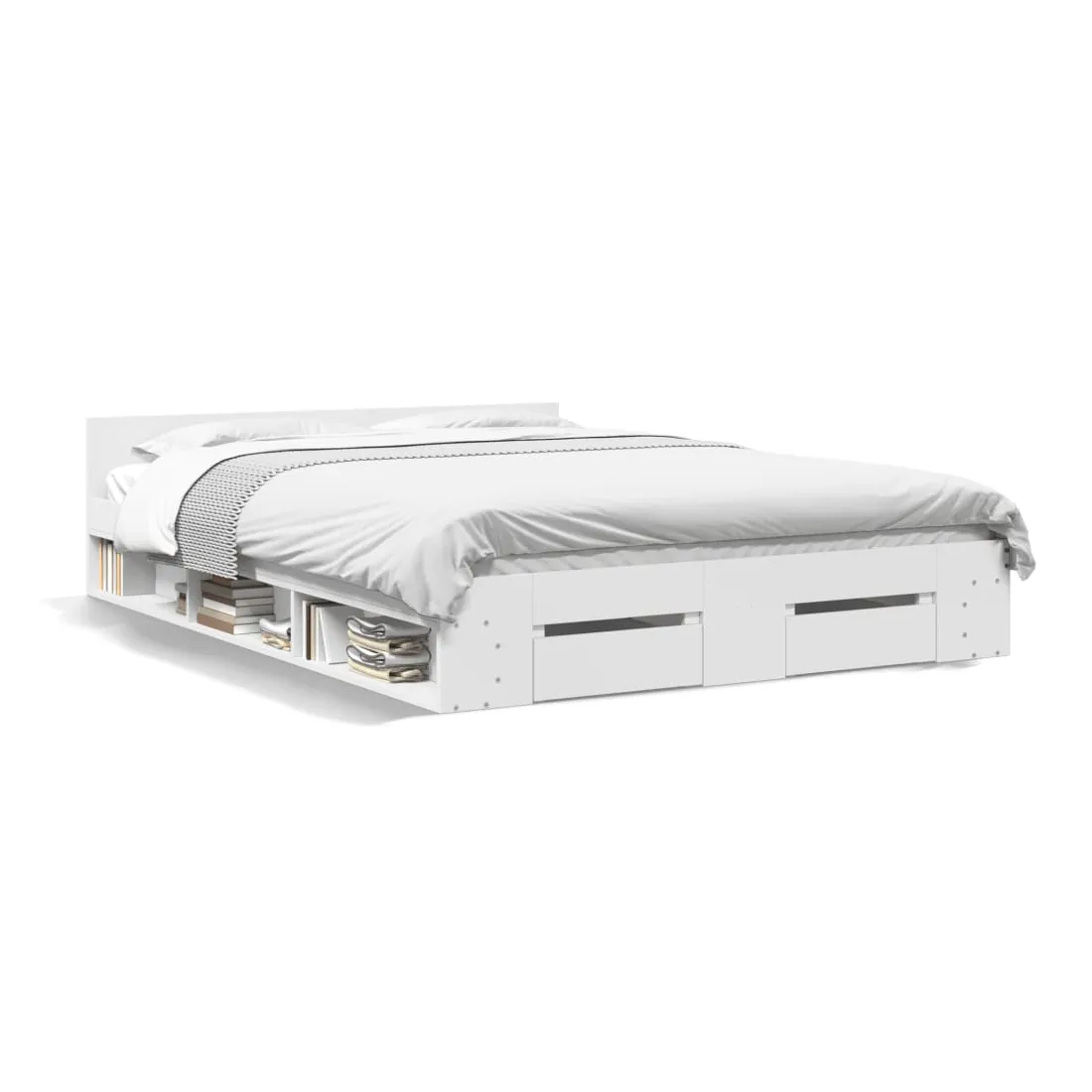Ajoutez une touche moderne à votre chambre à coucher avec ce cadre de lit avec tiroirs ! Il apportera une touche pratique et décorative à votre espace de vie. Matériau durable : le cadre de lit est fabriquée en bois d'ingénierie. Le bois d'ingénierie est d'une qualité exceptionnelle avec une surface lisse et présente également de la résistance, de la stabilité et de la résistance à l'humidité.Lattes robustes : les lattes de contreplaqué assurent une bonne répartition du poids, garantissant que le matelas reste en place à chaque torsion de votre corps pendant le sommeil.Fonction de rangement : les tiroirs de lit et les compartiments latéraux inclus offrent suffisamment d'espace de rangement pour ranger vos articles essentiels, gardant votre pièce propre et bien rangée. Bon à savoir :Un matelas n'est pas inclus avec ce lit. Nous offrons une sélection variée de matelas. Vous pouvez consulter notre boutique pour trouver un matelas assorti.