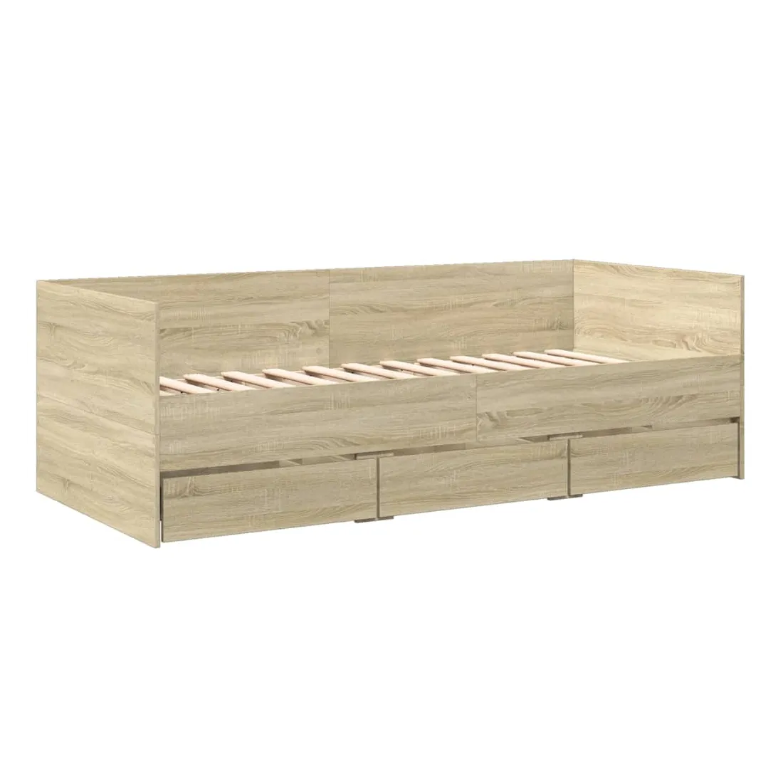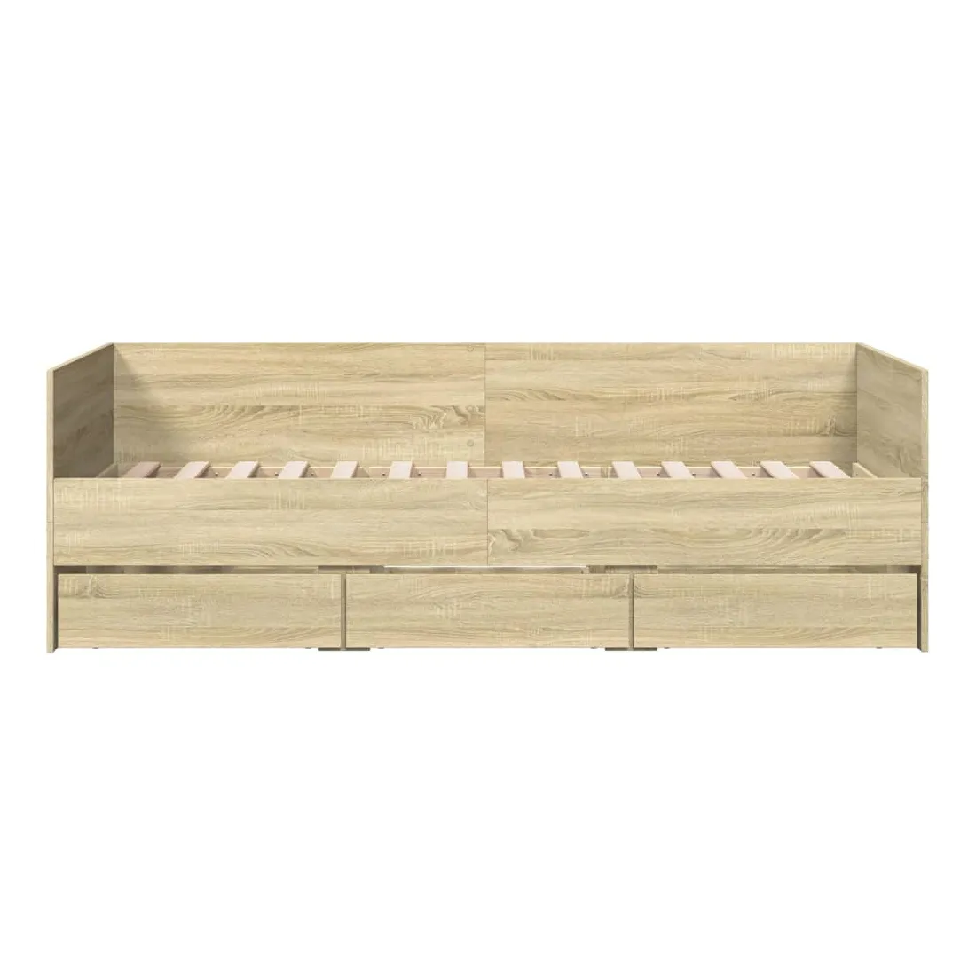 Ce lit de repos 2 en 1 avec tiroirs, servant à la fois de canapé et de lit, constitue un ajout pratique et accrocheur à votre salon ou chambre à coucher. Lit de repos polyvalent : le canapé-lit fonctionne comme un canapé pendant la journée et se transforme facilement en lit double la nuit en retirant le lit gigogne, offrant une solution pratique pour accueillir des invités et maximiser l'espace. Grand espace de rangement : ce lit d'appoint dispose de 3 tiroirs à roulettes qui offrent suffisamment d'espace pour ranger vos vêtements, chaussettes, jouets, coussins, etc.Construction solide : ce canapé-lit est doté d'un cadre robuste en bois d'ingénierie. Le bois d'ingénierie est d'une qualité exceptionnelle avec une surface lisse et se caractérise par sa solidité, sa stabilité et sa résistance à l'humidité. Bon à savoir :La livraison comprend uniquement un cadre de lit de jour. Le matelas n'est pas inclus. Vous pouvez consulter notre boutique pour trouver les matelas assortis.