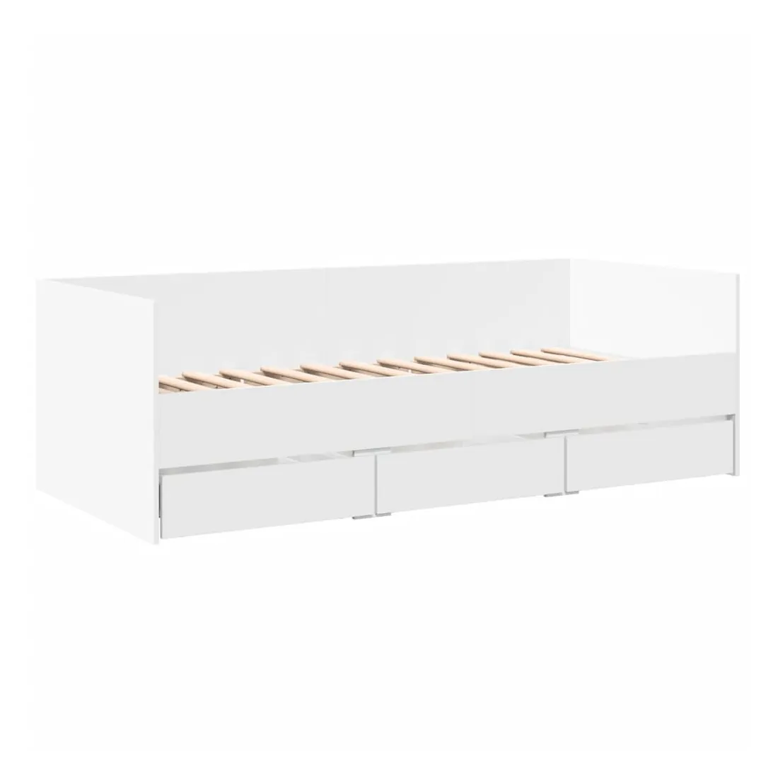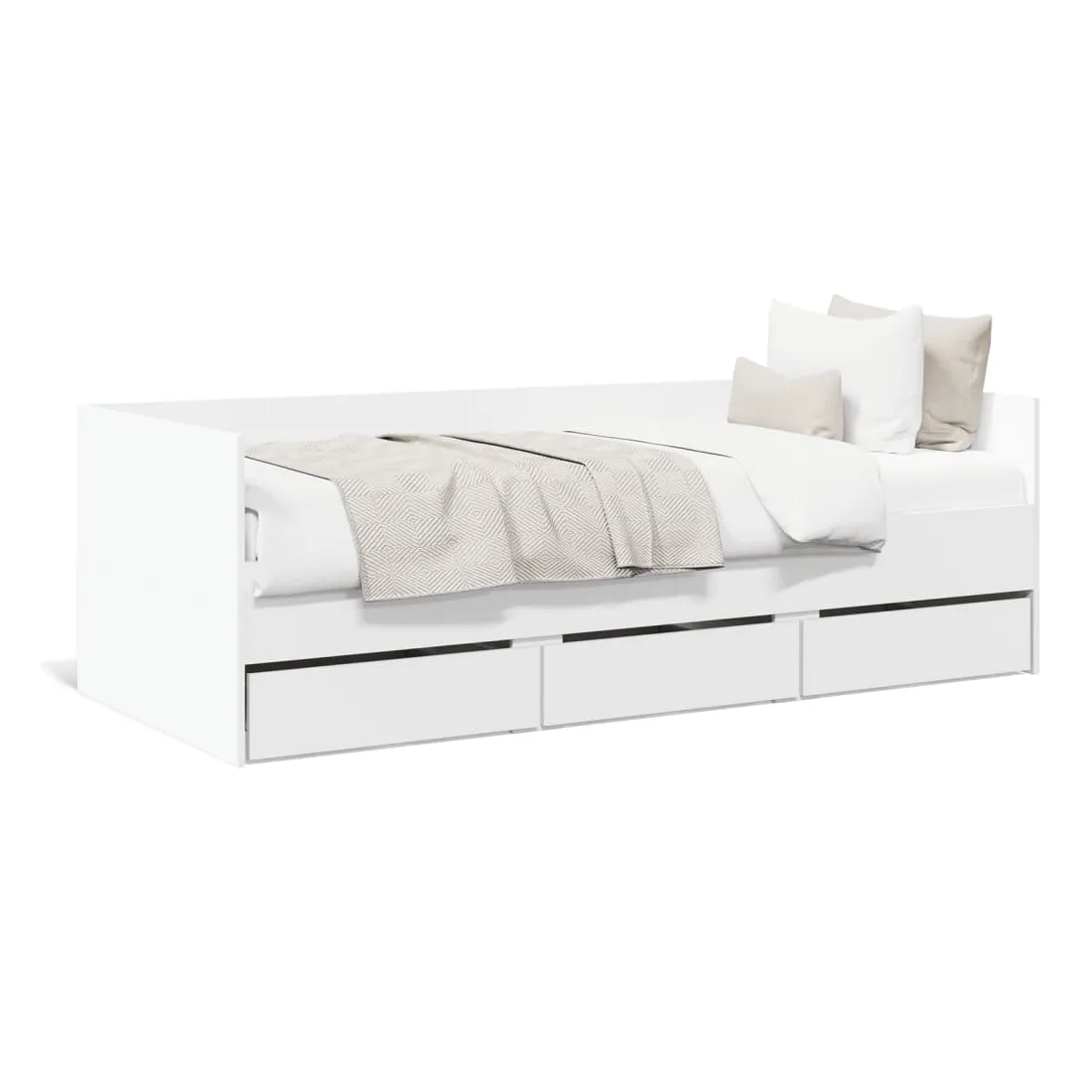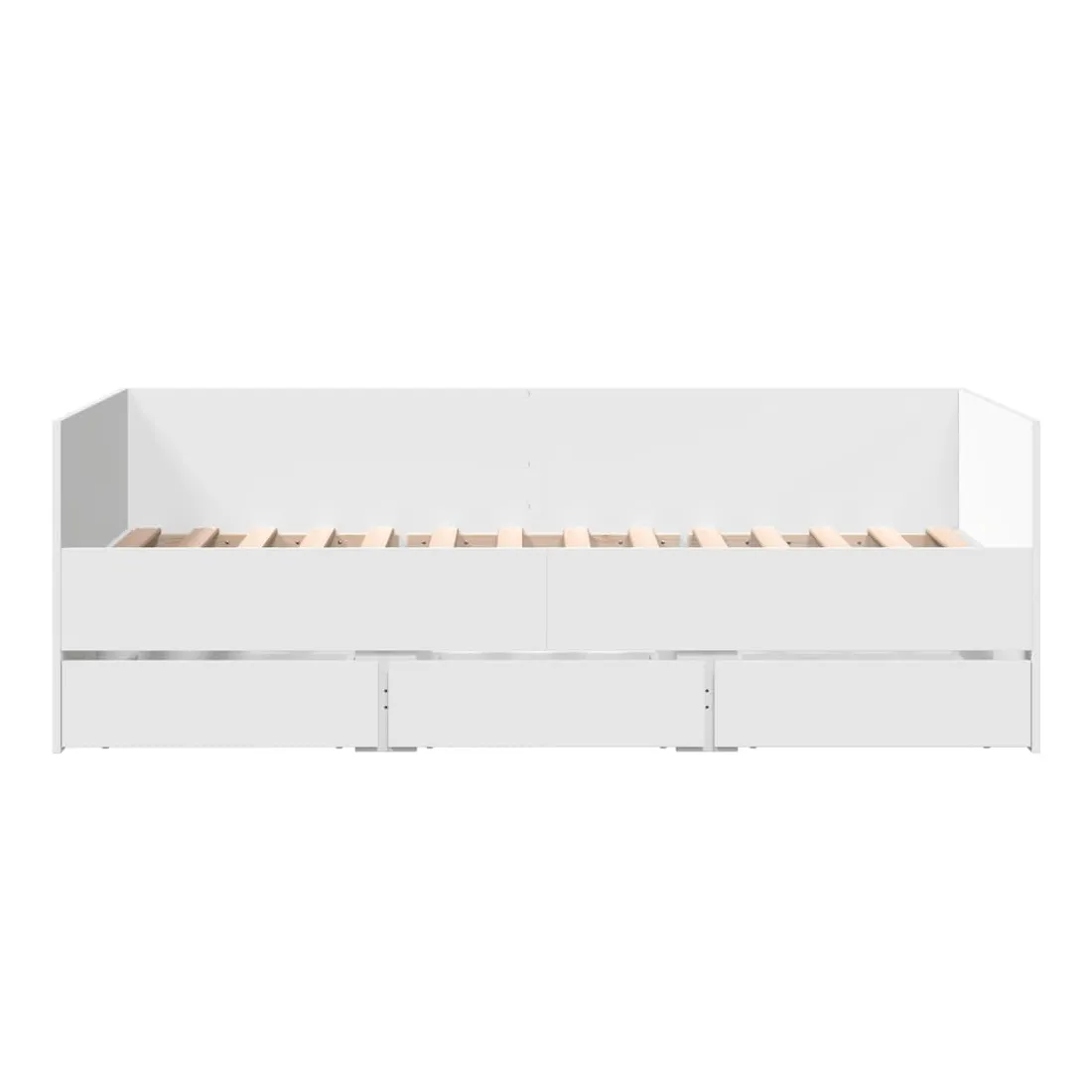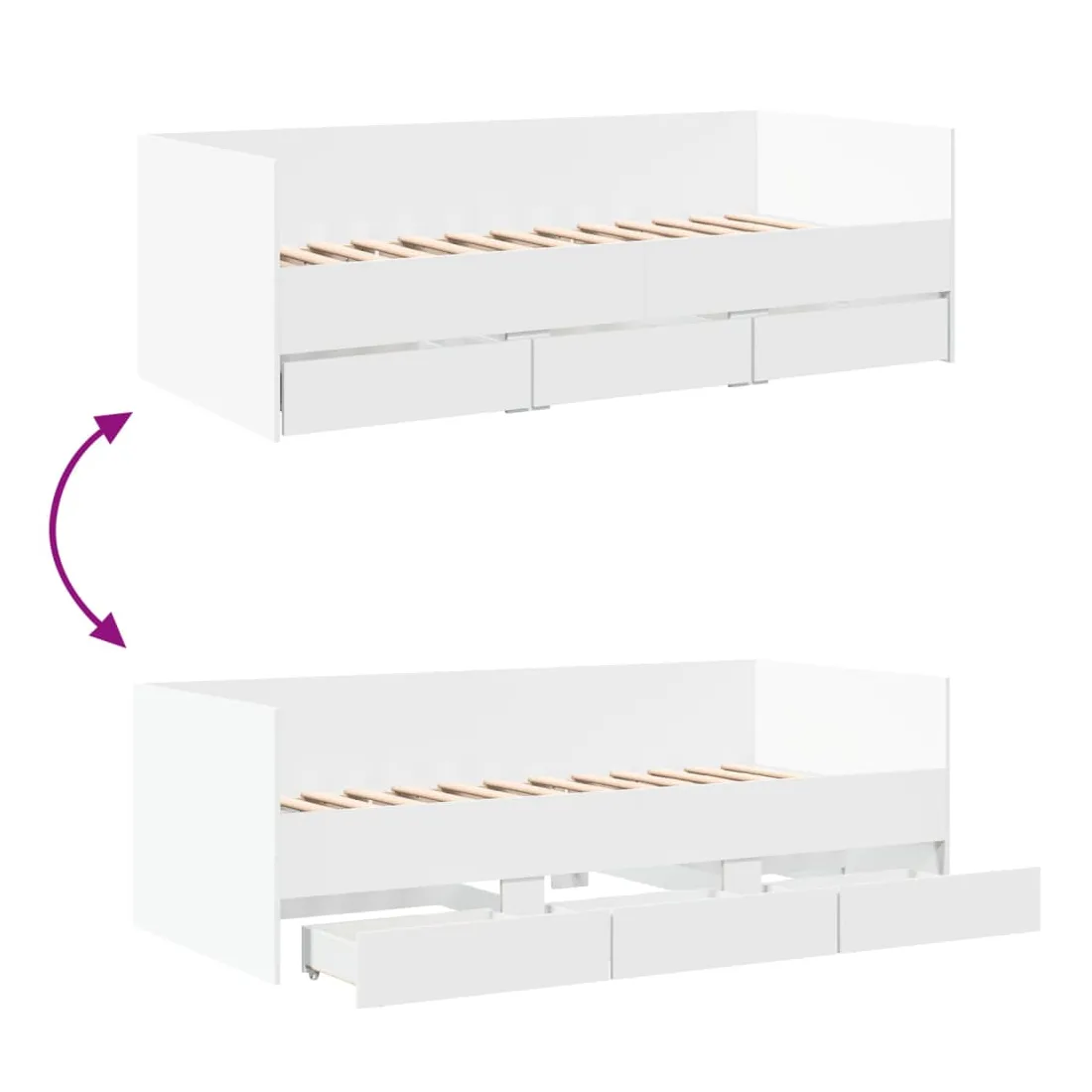 Ce lit de repos 2 en 1 avec tiroirs, servant à la fois de canapé et de lit, constitue un ajout pratique et accrocheur à votre salon ou chambre à coucher. Lit de repos polyvalent : le canapé-lit fonctionne comme un canapé pendant la journée et se transforme facilement en lit double la nuit en retirant le lit gigogne, offrant une solution pratique pour accueillir des invités et maximiser l'espace. Grand espace de rangement : ce lit d'appoint dispose de 3 tiroirs à roulettes qui offrent suffisamment d'espace pour ranger vos vêtements, chaussettes, jouets, coussins, etc.Construction solide : ce canapé-lit est doté d'un cadre robuste en bois d'ingénierie. Le bois d'ingénierie est d'une qualité exceptionnelle avec une surface lisse et se caractérise par sa solidité, sa stabilité et sa résistance à l'humidité. Bon à savoir :La livraison comprend uniquement un cadre de lit de jour. Le matelas n'est pas inclus. Vous pouvez consulter notre boutique pour trouver les matelas assortis.