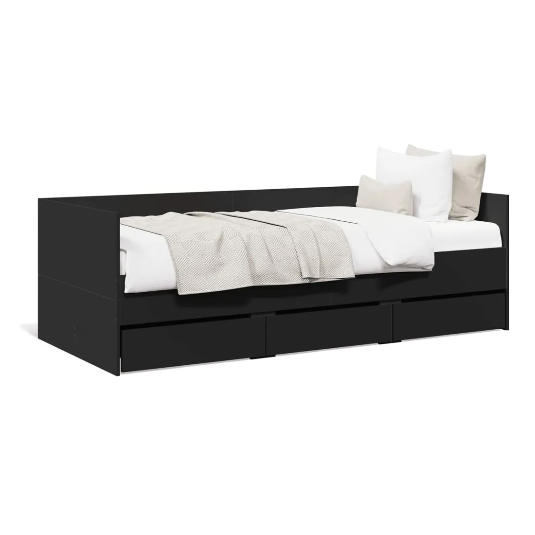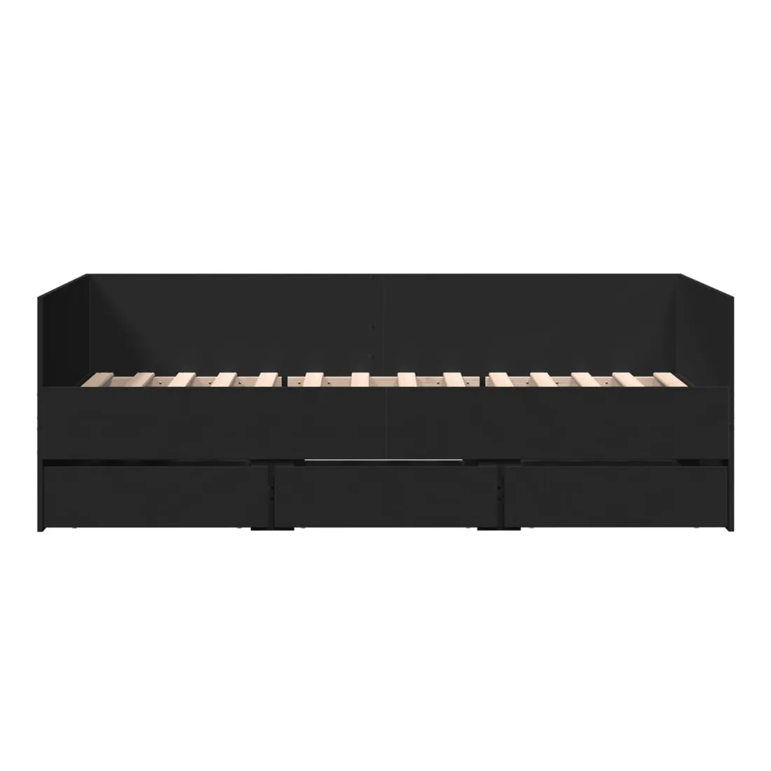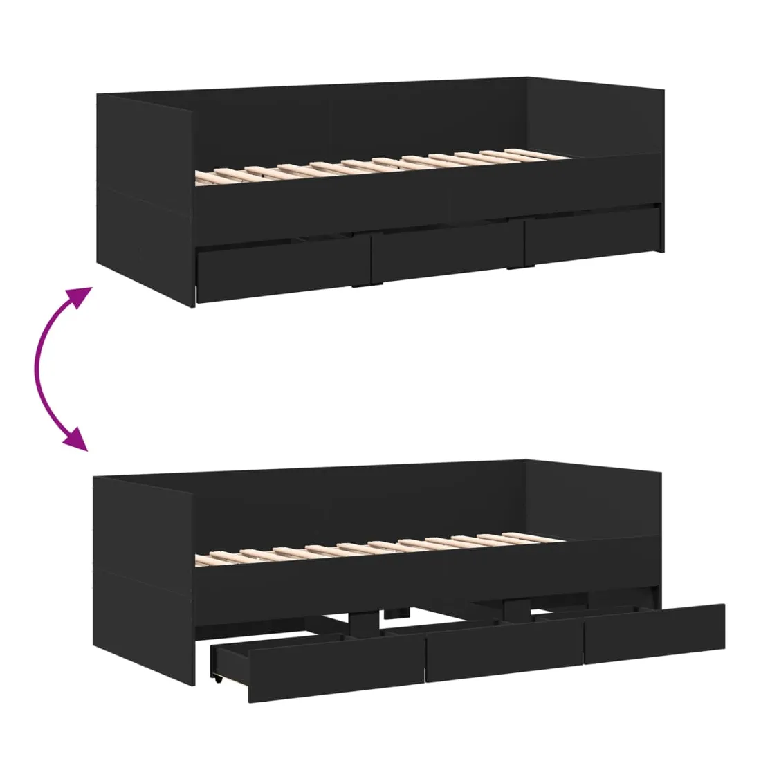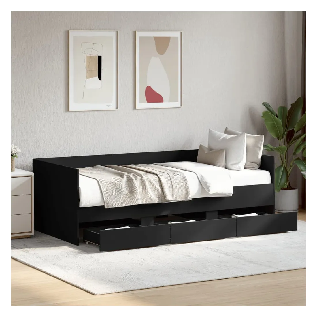 Ce lit de repos 2 en 1 avec tiroirs, servant à la fois de canapé et de lit, constitue un ajout pratique et accrocheur à votre salon ou chambre à coucher. Lit de repos polyvalent : le canapé-lit fonctionne comme un canapé pendant la journée et se transforme facilement en lit double la nuit en retirant le lit gigogne, offrant une solution pratique pour accueillir des invités et maximiser l'espace. Grand espace de rangement : ce lit d'appoint dispose de 3 tiroirs à roulettes qui offrent suffisamment d'espace pour ranger vos vêtements, chaussettes, jouets, coussins, etc.Construction solide : ce canapé-lit est doté d'un cadre robuste en bois d'ingénierie. Le bois d'ingénierie est d'une qualité exceptionnelle avec une surface lisse et se caractérise par sa solidité, sa stabilité et sa résistance à l'humidité. Bon à savoir :La livraison comprend uniquement un cadre de lit de jour. Le matelas n'est pas inclus. Vous pouvez consulter notre boutique pour trouver les matelas assortis.