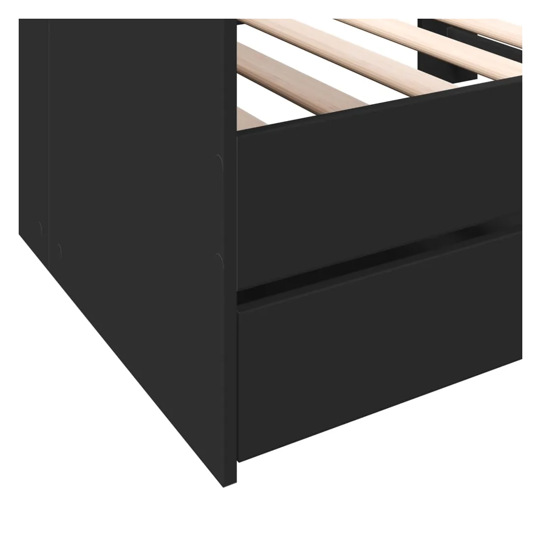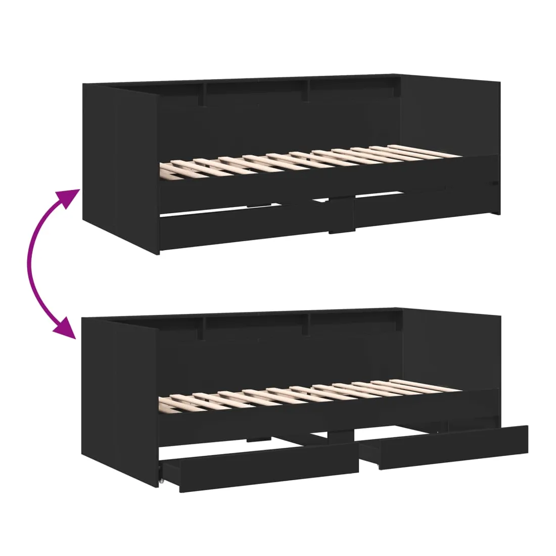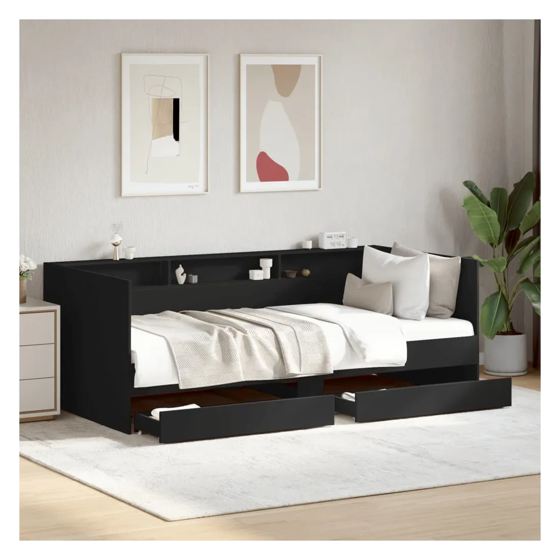 Ce lit de repos 2 en 1 avec tiroirs, servant à la fois de canapé et de lit, constitue un ajout pratique et accrocheur à votre salon ou chambre à coucher. Lit de repos polyvalent : le canapé-lit fonctionne comme un canapé pendant la journée et comme un lit pendant la nuit, offrant une solution pratique pour accueillir des invités. Grand espace de rangement : ce lit d'appoint dispose de 2 tiroirs à roulettes qui offrent suffisamment d'espace pour ranger vos vêtements, chaussettes, jouets, coussins, etc.Construction solide : ce canapé-lit est doté d'un cadre robuste en bois d'ingénierie. Le bois d'ingénierie est d'une qualité exceptionnelle avec une surface lisse et se caractérise par sa solidité, sa stabilité et sa résistance à l'humidité. Bon à savoir :La livraison comprend uniquement un cadre de lit de jour. Le matelas n'est pas inclus. Vous pouvez consulter notre boutique pour trouver les matelas assortis.