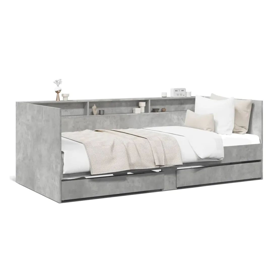 Ce lit de repos 2 en 1 avec tiroirs, servant à la fois de canapé et de lit, constitue un ajout pratique et accrocheur à votre salon ou chambre à coucher. Lit de repos polyvalent : le canapé-lit fonctionne comme un canapé pendant la journée et comme un lit pendant la nuit, offrant une solution pratique pour accueillir des invités. Grand espace de rangement : ce lit d'appoint dispose de 2 tiroirs à roulettes qui offrent suffisamment d'espace pour ranger vos vêtements, chaussettes, jouets, coussins, etc.Construction solide : ce canapé-lit est doté d'un cadre robuste en bois d'ingénierie. Le bois d'ingénierie est d'une qualité exceptionnelle avec une surface lisse et se caractérise par sa solidité, sa stabilité et sa résistance à l'humidité. Bon à savoir :La livraison comprend uniquement un cadre de lit de jour. Le matelas n'est pas inclus. Vous pouvez consulter notre boutique pour trouver les matelas assortis.