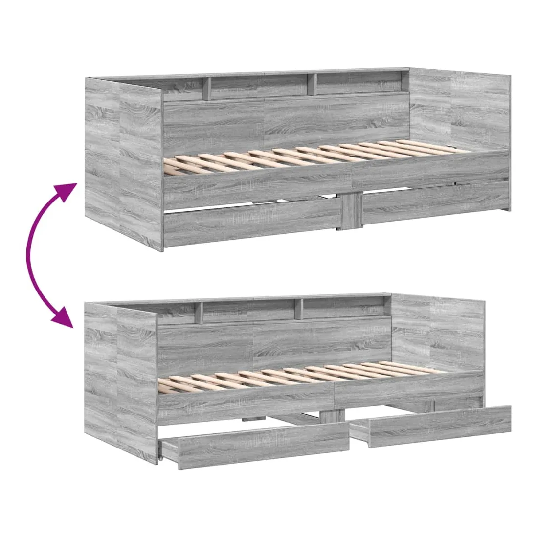 Ce lit de repos 2 en 1 avec tiroirs, servant à la fois de canapé et de lit, constitue un ajout pratique et accrocheur à votre salon ou chambre à coucher. Lit de repos polyvalent : le canapé-lit fonctionne comme un canapé pendant la journée et comme un lit pendant la nuit, offrant une solution pratique pour accueillir des invités. Grand espace de rangement : ce lit d'appoint dispose de 2 tiroirs à roulettes qui offrent suffisamment d'espace pour ranger vos vêtements, chaussettes, jouets, coussins, etc.Construction solide : ce canapé-lit est doté d'un cadre robuste en bois d'ingénierie. Le bois d'ingénierie est d'une qualité exceptionnelle avec une surface lisse et se caractérise par sa solidité, sa stabilité et sa résistance à l'humidité. Bon à savoir :La livraison comprend uniquement un cadre de lit de jour. Le matelas n'est pas inclus. Vous pouvez consulter notre boutique pour trouver les matelas assortis.