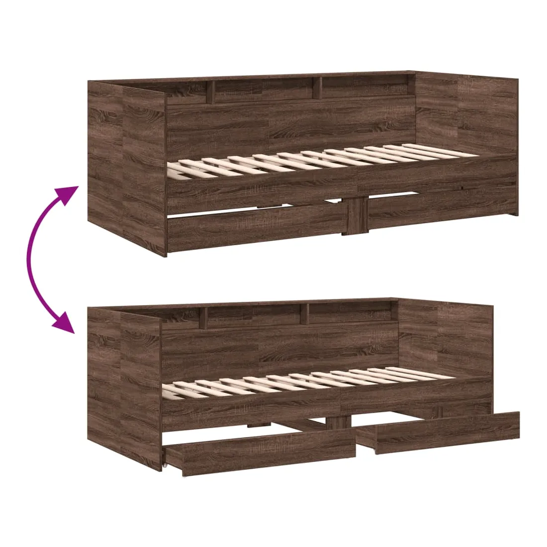 Ce lit de repos 2 en 1 avec tiroirs, servant à la fois de canapé et de lit, constitue un ajout pratique et accrocheur à votre salon ou chambre à coucher. Lit de repos polyvalent : le canapé-lit fonctionne comme un canapé pendant la journée et comme un lit pendant la nuit, offrant une solution pratique pour accueillir des invités. Grand espace de rangement : ce lit d'appoint dispose de 2 tiroirs à roulettes qui offrent suffisamment d'espace pour ranger vos vêtements, chaussettes, jouets, coussins, etc.Construction solide : ce canapé-lit est doté d'un cadre robuste en bois d'ingénierie. Le bois d'ingénierie est d'une qualité exceptionnelle avec une surface lisse et se caractérise par sa solidité, sa stabilité et sa résistance à l'humidité. Bon à savoir :La livraison comprend uniquement un cadre de lit de jour. Le matelas n'est pas inclus. Vous pouvez consulter notre boutique pour trouver les matelas assortis.