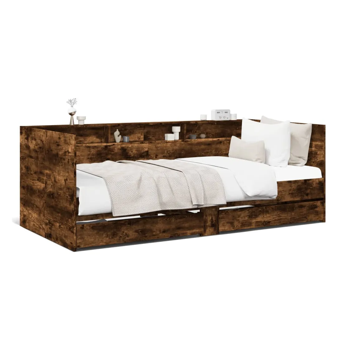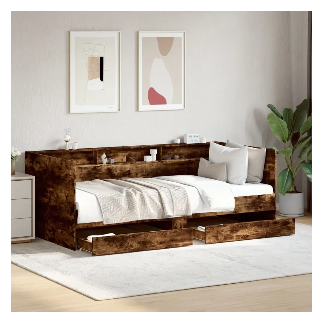 Ce lit de repos 2 en 1 avec tiroirs, servant à la fois de canapé et de lit, constitue un ajout pratique et accrocheur à votre salon ou chambre à coucher. Lit de repos polyvalent : le canapé-lit fonctionne comme un canapé pendant la journée et comme un lit pendant la nuit, offrant une solution pratique pour accueillir des invités. Grand espace de rangement : ce lit d'appoint dispose de 2 tiroirs à roulettes qui offrent suffisamment d'espace pour ranger vos vêtements, chaussettes, jouets, coussins, etc.Construction solide : ce canapé-lit est doté d'un cadre robuste en bois d'ingénierie. Le bois d'ingénierie est d'une qualité exceptionnelle avec une surface lisse et se caractérise par sa solidité, sa stabilité et sa résistance à l'humidité. Bon à savoir :La livraison comprend uniquement un cadre de lit de jour. Le matelas n'est pas inclus. Vous pouvez consulter notre boutique pour trouver les matelas assortis.