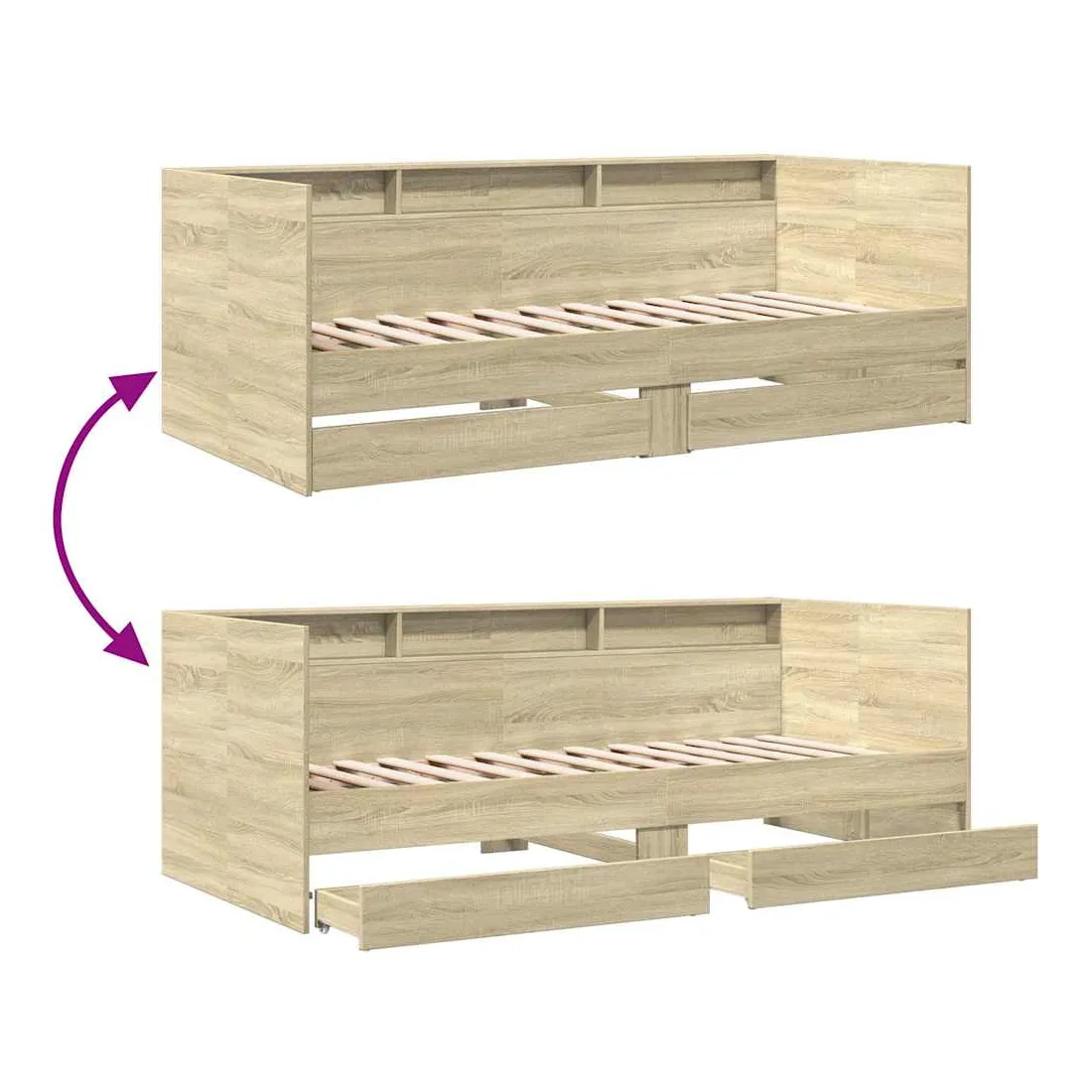 Ce lit de repos 2 en 1 avec tiroirs, servant à la fois de canapé et de lit, constitue un ajout pratique et accrocheur à votre salon ou chambre à coucher. Lit de repos polyvalent : le canapé-lit fonctionne comme un canapé pendant la journée et comme un lit pendant la nuit, offrant une solution pratique pour accueillir des invités. Grand espace de rangement : ce lit d'appoint dispose de 2 tiroirs à roulettes qui offrent suffisamment d'espace pour ranger vos vêtements, chaussettes, jouets, coussins, etc.Construction solide : ce canapé-lit est doté d'un cadre robuste en bois d'ingénierie. Le bois d'ingénierie est d'une qualité exceptionnelle avec une surface lisse et se caractérise par sa solidité, sa stabilité et sa résistance à l'humidité. Bon à savoir :La livraison comprend uniquement un cadre de lit de jour. Le matelas n'est pas inclus. Vous pouvez consulter notre boutique pour trouver les matelas assortis.