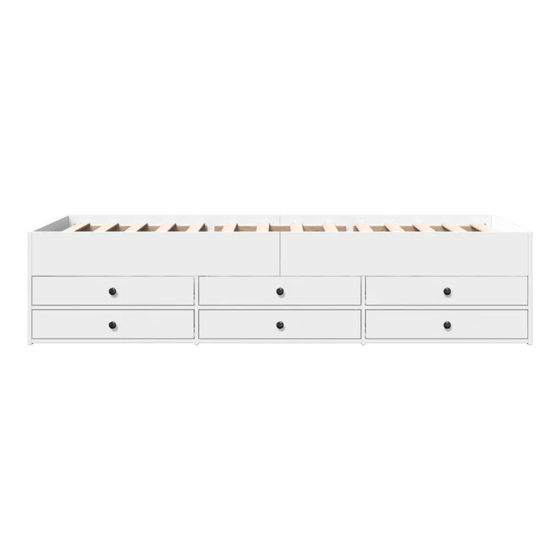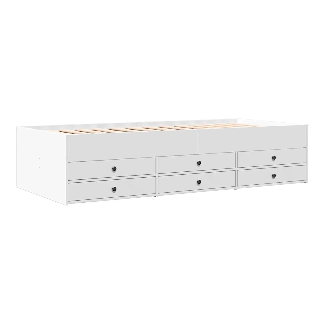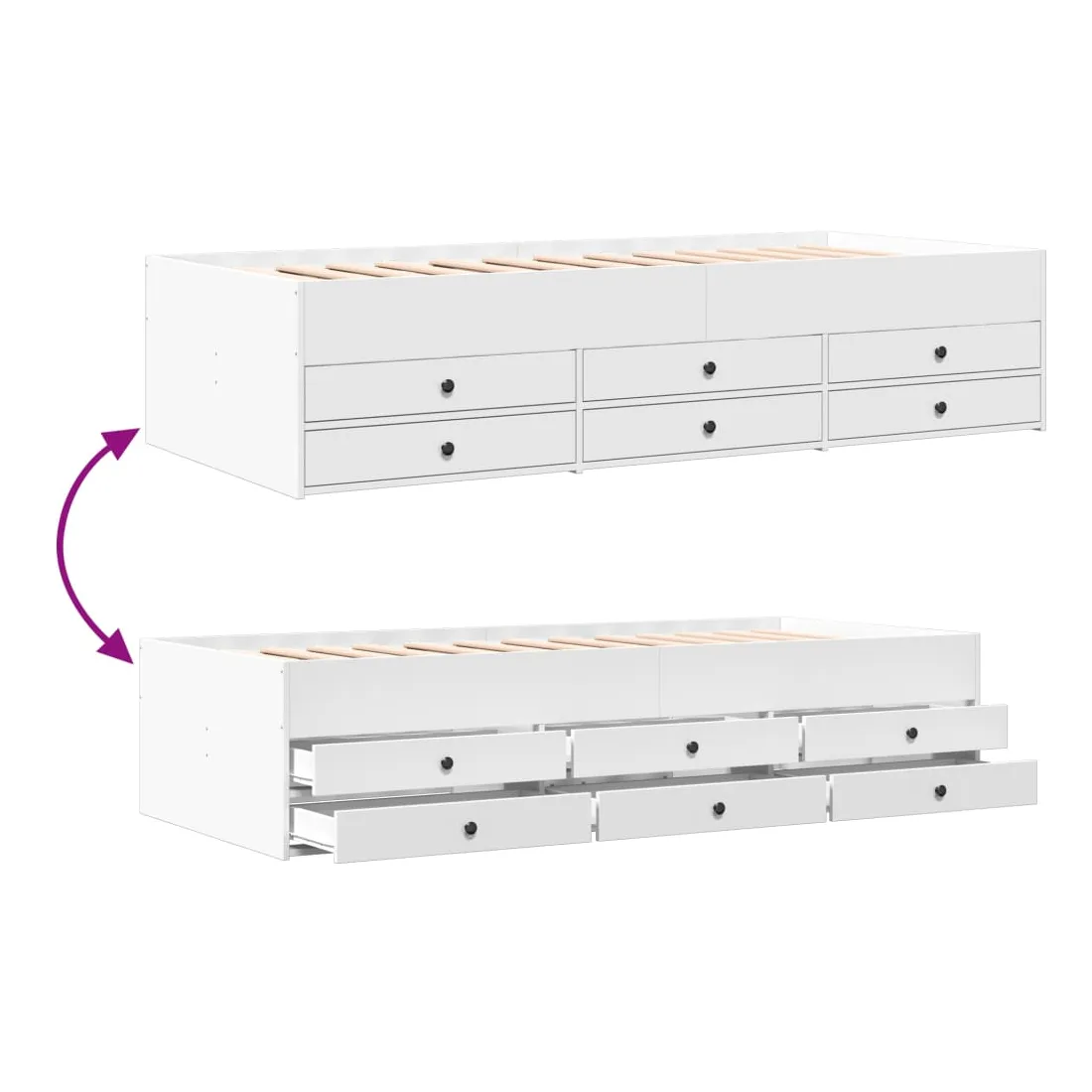 vidaXLCe lit de repos 2 en 1 avec tiroirs, servant à la fois de canapé et de lit, constitue un ajout pratique et accrocheur à votre salon ou chambre à coucher. Méridienne polyvalente : Le canapé-lit fait office de canapé le jour ou de lit la nuit, ce qui constitue une solution pratique pour accueillir des invités et optimiser l'espace. Grand espace de rangement : ce lit d'appoint dispose de 6 tiroirs à roulettes qui offrent suffisamment d'espace pour ranger vos vêtements, chaussettes, jouets, coussins, etc.Construction solide : ce canapé-lit est doté d'un cadre robuste en bois d'ingénierie. Le bois d'ingénierie est d'une qualité exceptionnelle avec une surface lisse et se caractérise par sa solidité, sa stabilité et sa résistance à l'humidité. Bon à savoir :La livraison comprend uniquement un cadre de lit de jour. Le matelas n'est pas inclus. Vous pouvez consulter notre boutique pour trouver les matelas assortis.