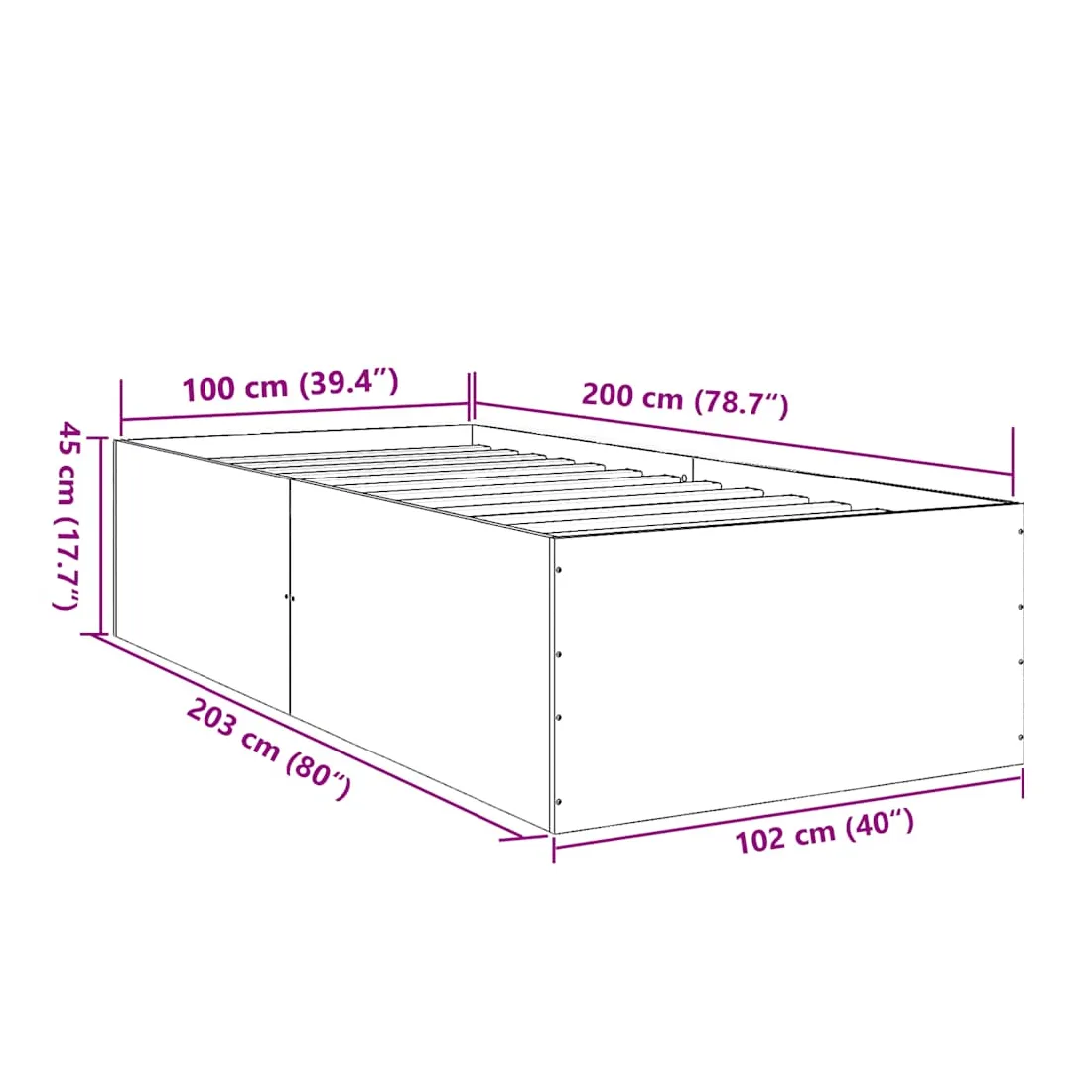 - Dimensions totales : 203 x 102 x 45 cm (L x l x H)