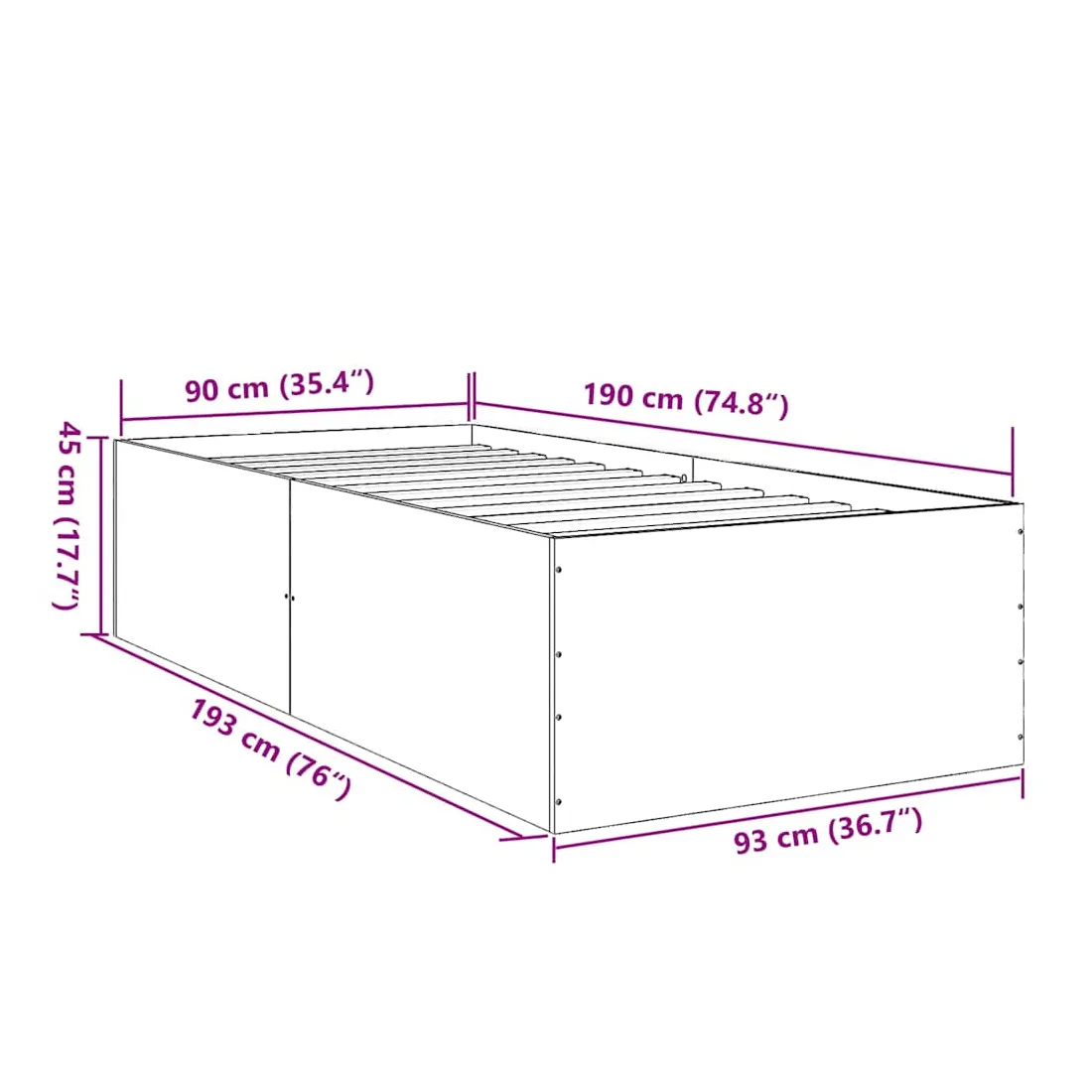 - Dimensions totales : 193 x 93 x 45 cm (L x l x H)