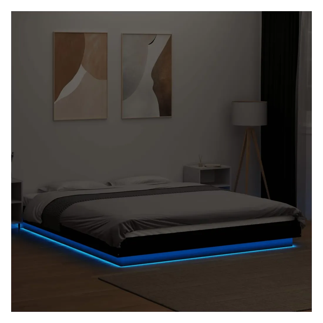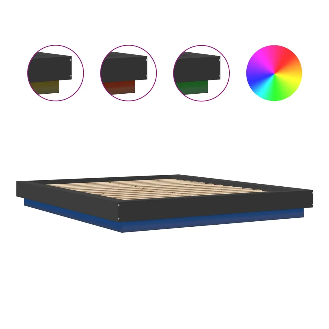 Obtenez une meilleure nuit de sommeil reposante grâce à ce cadre de lit avec lumières LED ! Il est un supplément accueillant à toute chambre à coucher. Matériau durable : le bois d'ingénierie est d'une qualité exceptionnelle avec une surface lisse et présente également résistance, stabilité et résistance à l'humidité. Lumières LED RVB : le cadre de lit est équipé de lumières LED RVB vibrantes. Avec divers menus personnalisables, vous pouvez changer sans effort la couleur des lumières et même les régler automatiquement. Ces lumières LED renforcent non seulement l'aspect contemporain du sommier, mais ajoutent également à son attrait tendance. Lattes robustes : les lattes de contreplaqué assurent une bonne répartition du poids, garantissant que le matelas reste en place à chaque torsion de votre corps pendant le sommeil. Bon à savoir :Un matelas n'est pas inclus avec ce lit. Nous offrons une sélection variée de matelas. Vous pouvez consulter notre boutique pour trouver un matelas assorti. Ce produit est doté d'un connecteur USB qui nécessite une source d'alimentation USB de 5V certifiée (non incluse).