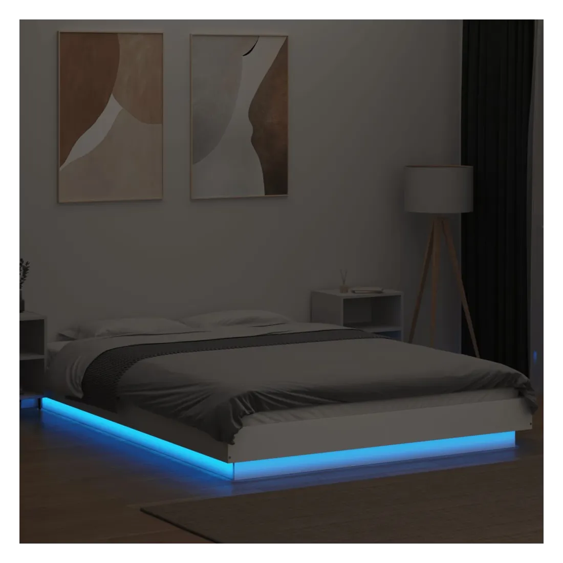 Obtenez une meilleure nuit de sommeil reposante grâce à ce cadre de lit avec lumières LED ! Il est un supplément accueillant à toute chambre à coucher. Matériau durable : le bois d'ingénierie est d'une qualité exceptionnelle avec une surface lisse et présente également résistance, stabilité et résistance à l'humidité. Lumières LED RVB : le cadre de lit est équipé de lumières LED RVB vibrantes. Avec divers menus personnalisables, vous pouvez changer sans effort la couleur des lumières et même les régler automatiquement. Ces lumières LED renforcent non seulement l'aspect contemporain du sommier, mais ajoutent également à son attrait tendance. Lattes robustes : les lattes de contreplaqué assurent une bonne répartition du poids, garantissant que le matelas reste en place à chaque torsion de votre corps pendant le sommeil. Bon à savoir :Un matelas n'est pas inclus avec ce lit. Nous offrons une sélection variée de matelas. Vous pouvez consulter notre boutique pour trouver un matelas assorti. Ce produit est doté d'un connecteur USB qui nécessite une source d'alimentation USB de 5V certifiée (non incluse).