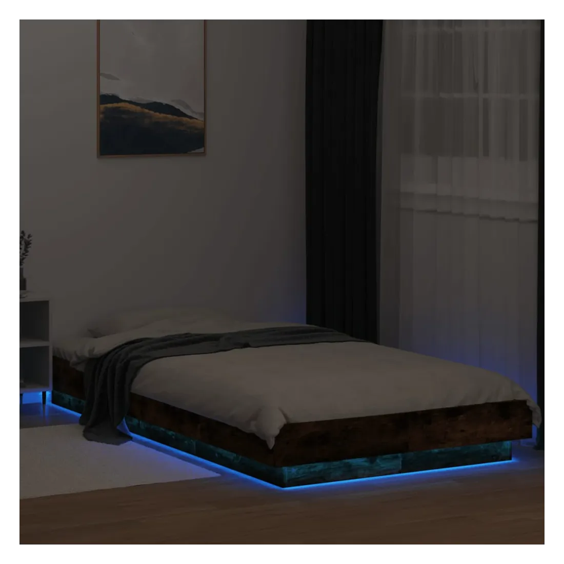 Obtenez une meilleure nuit de sommeil reposante grâce à ce cadre de lit avec lumières LED ! Il est un supplément accueillant à toute chambre à coucher. Matériau durable : le bois d'ingénierie est d'une qualité exceptionnelle avec une surface lisse et présente également résistance, stabilité et résistance à l'humidité. Lumières LED RVB : le cadre de lit est équipé de lumières LED RVB vibrantes. Avec divers menus personnalisables, vous pouvez changer sans effort la couleur des lumières et même les régler automatiquement. Ces lumières LED renforcent non seulement l'aspect contemporain du sommier, mais ajoutent également à son attrait tendance. Lattes robustes : les lattes de contreplaqué assurent une bonne répartition du poids, garantissant que le matelas reste en place à chaque torsion de votre corps pendant le sommeil. Bon à savoir :Un matelas n'est pas inclus avec ce lit. Nous offrons une sélection variée de matelas. Vous pouvez consulter notre boutique pour trouver un matelas assorti. Ce produit est doté d'un connecteur USB qui nécessite une source d'alimentation USB de 5V certifiée (non incluse).