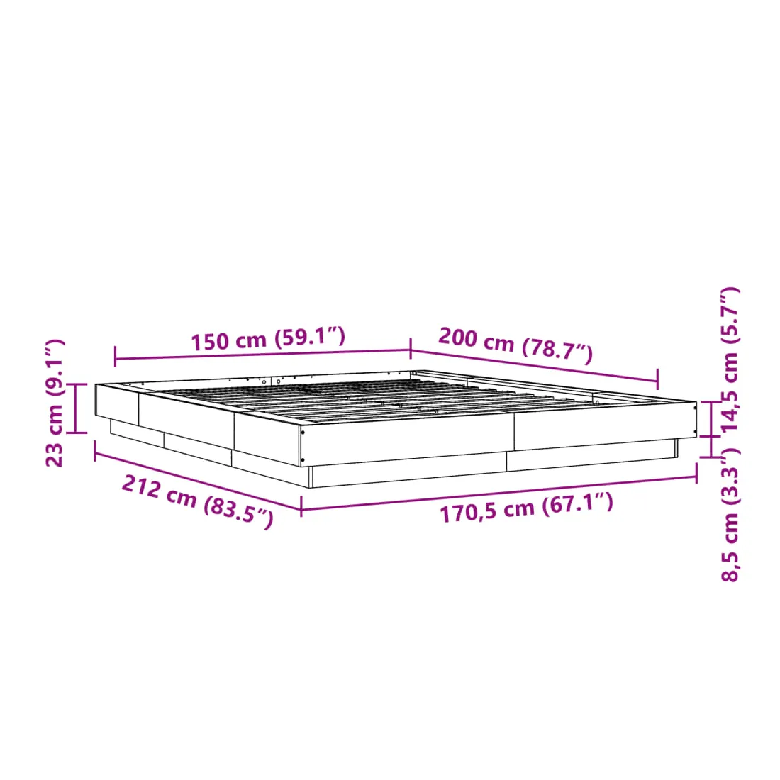 - Dimensions du matelas correspondant : 150 x 200 cm (l x L) (matelas non inclus)