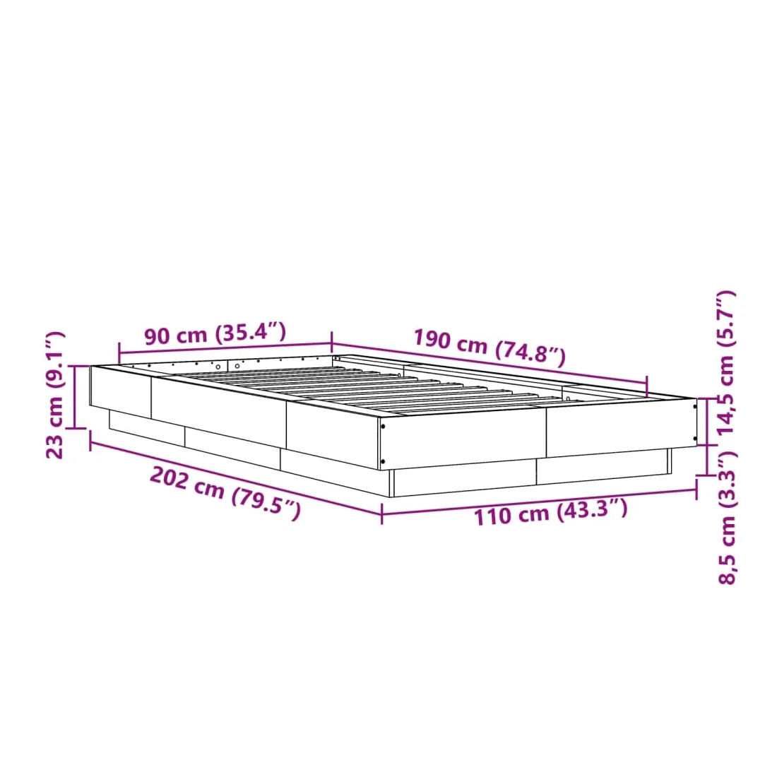 - Dimensions totales : 202 x 110 x 23 cm (L x l x H)