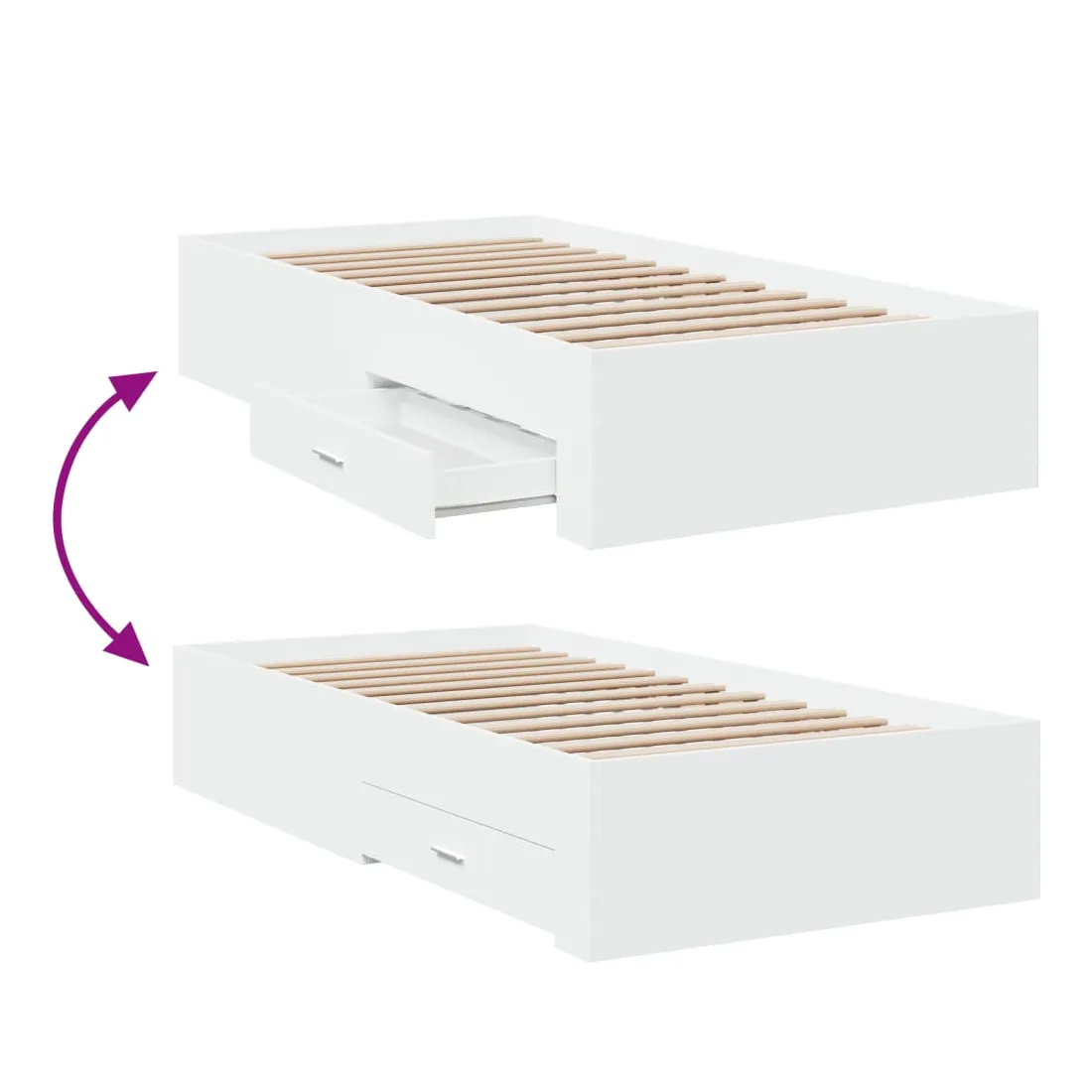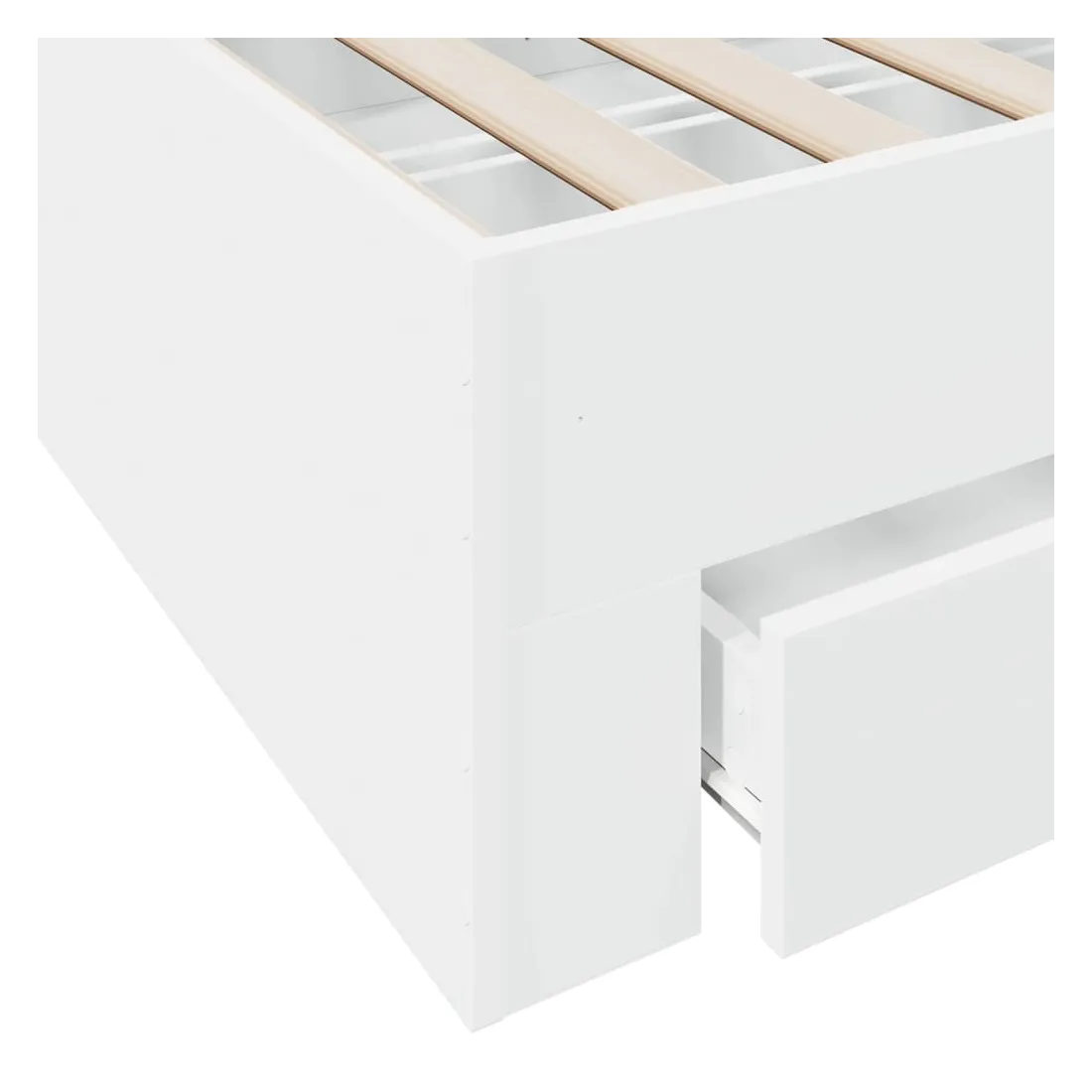 Ajoutez une touche moderne à votre chambre à coucher avec ce cadre de lit avec tiroirs ! Il apportera une touche pratique et décorative à votre espace de vie. Matériau durable : le cadre de lit est fabriquée en bois d'ingénierie. Le bois d'ingénierie est d'une qualité exceptionnelle avec une surface lisse et présente également de la résistance, de la stabilité et de la résistance à l'humidité.Lattes robustes : les lattes de contreplaqué assurent une bonne répartition du poids, garantissant que le matelas reste en place à chaque torsion de votre corps pendant le sommeil.Fonction de rangement : les tiroirs de lit inclus offrent suffisamment d'espace de rangement pour ranger vos articles essentiels, gardant votre pièce propre et bien rangée. Bon à savoir :Un matelas n'est pas inclus avec ce lit. Nous offrons une sélection variée de matelas. Vous pouvez consulter notre boutique pour trouver un matelas assorti.