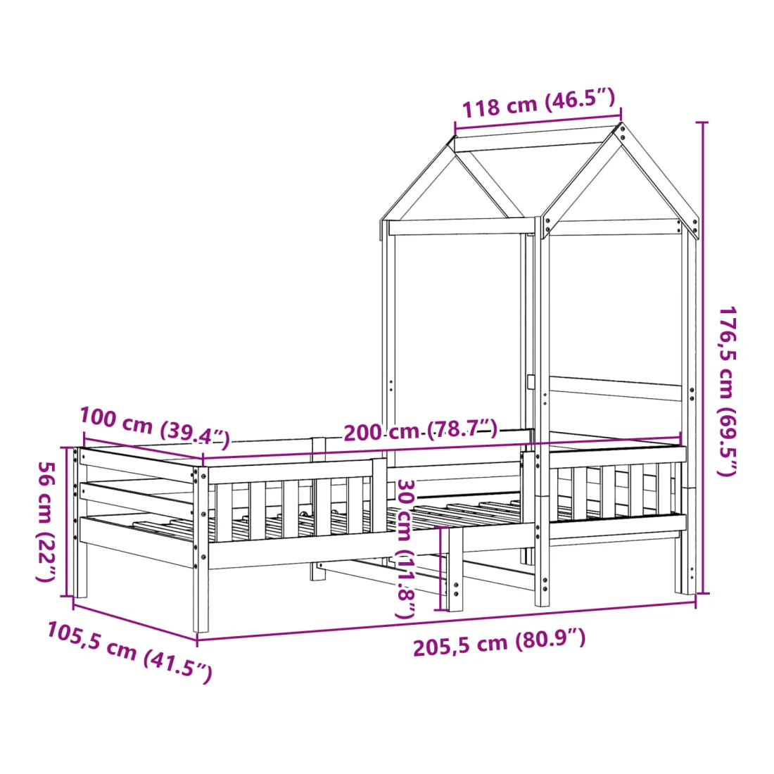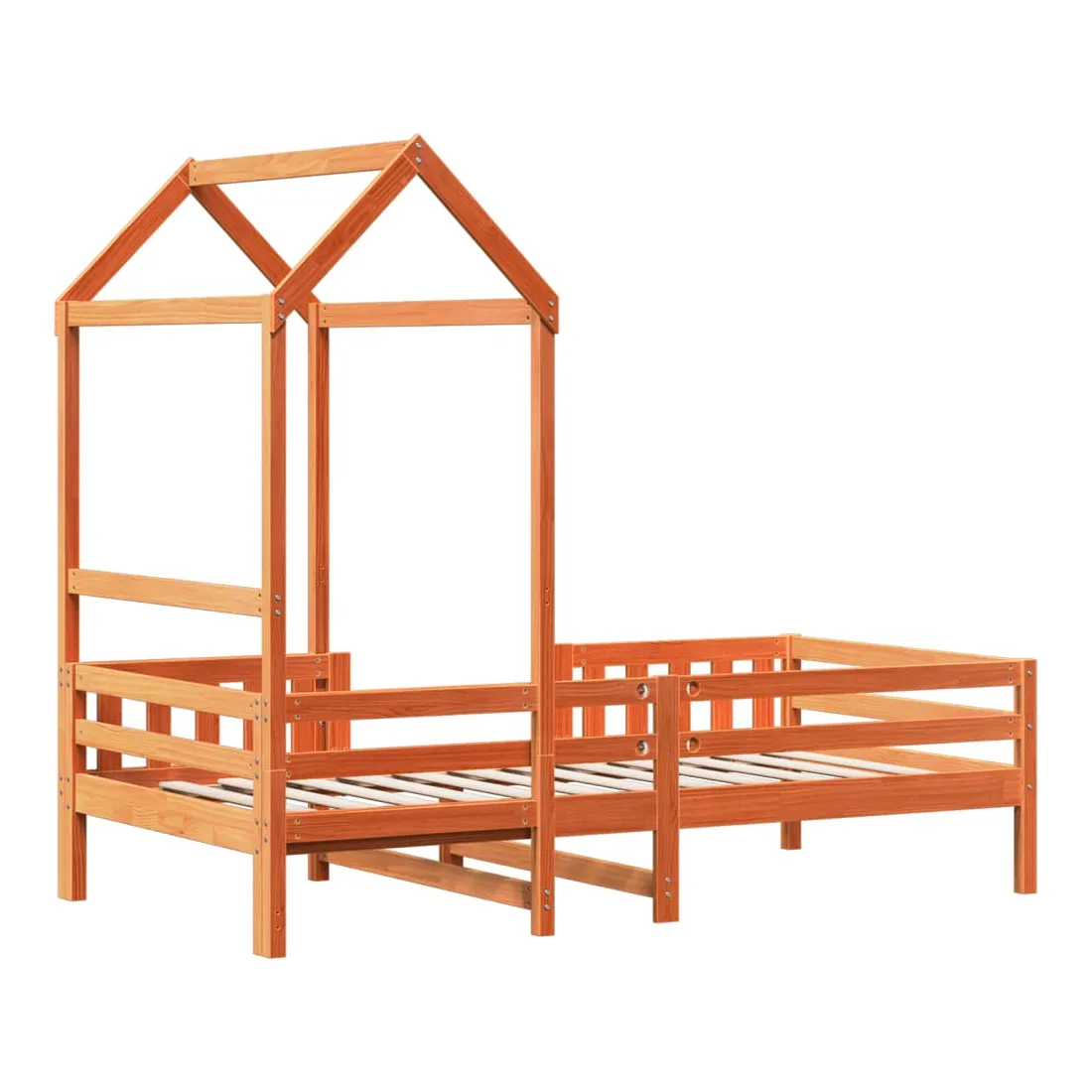 Ajoutez une touche moderne à votre chambre à coucher avec ce cadre de lit ! Il apportera une touche pratique et décorative à votre espace de vie. Bois de pin massif : le bois de pin massif est un matériau naturel magnifique. Le bois de pin a un grain droit et les nœuds donnent au matériau son aspect caractéristique et rustique.Lattes de contreplaqué : les lattes de contreplaqué assurent une bonne répartition du poids, garantissant que le matelas reste en place à chaque torsion de votre corps pendant le sommeil.Très amusant : en combinant le toit avec le lit de votre enfant, vous pouvez créer une cachette qui permettra à votre enfant de s'amuser à l'heure du coucher. Cette addition innovante non seulement sera un point focal passionnant, mais aussi apportera de la fantaisie et de l'amusement dans la chambre d'enfant.Porte latérale ouverte : le toit est doté d'une porte latérale ouverte qui permet à vos enfants d'entrer et de sortir facilement du lit.Design moderne : ajoutez un style moderne à votre décor intérieur existant ! Le design moderne présente des lignes épurées, des looks minimalistes et de la lumière naturelle dans le cadre du style de design d'intérieur. Bon à savoir :Un matelas n'est pas inclus avec ce lit. Nous offrons une sélection variée de matelas. Vous pouvez consulter notre boutique pour trouver un matelas assorti.