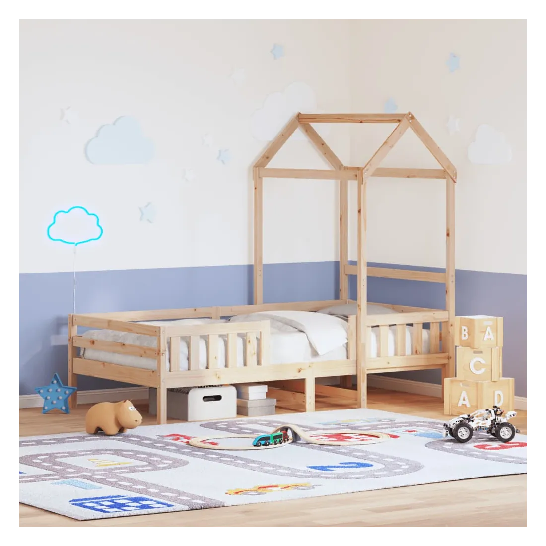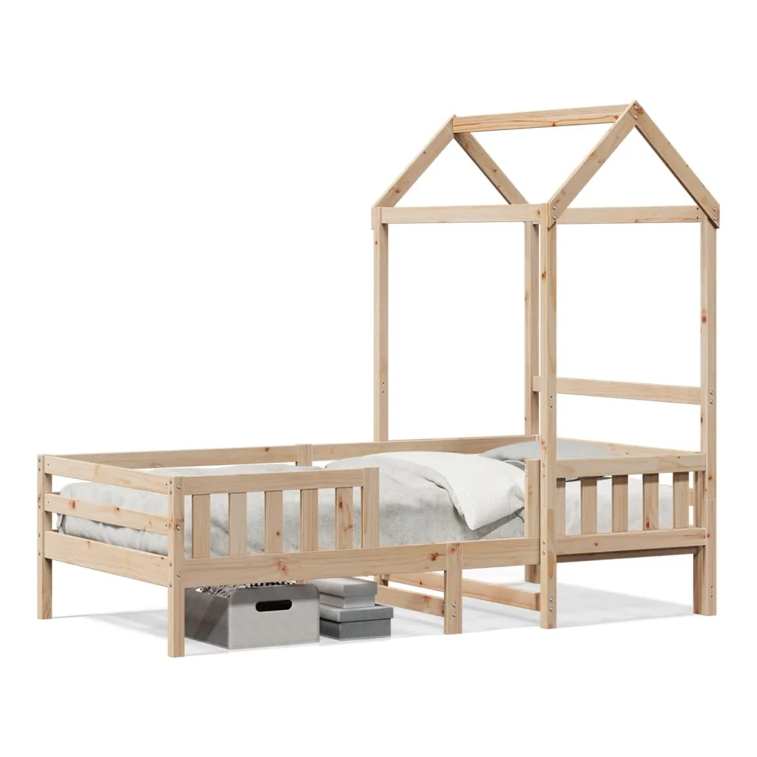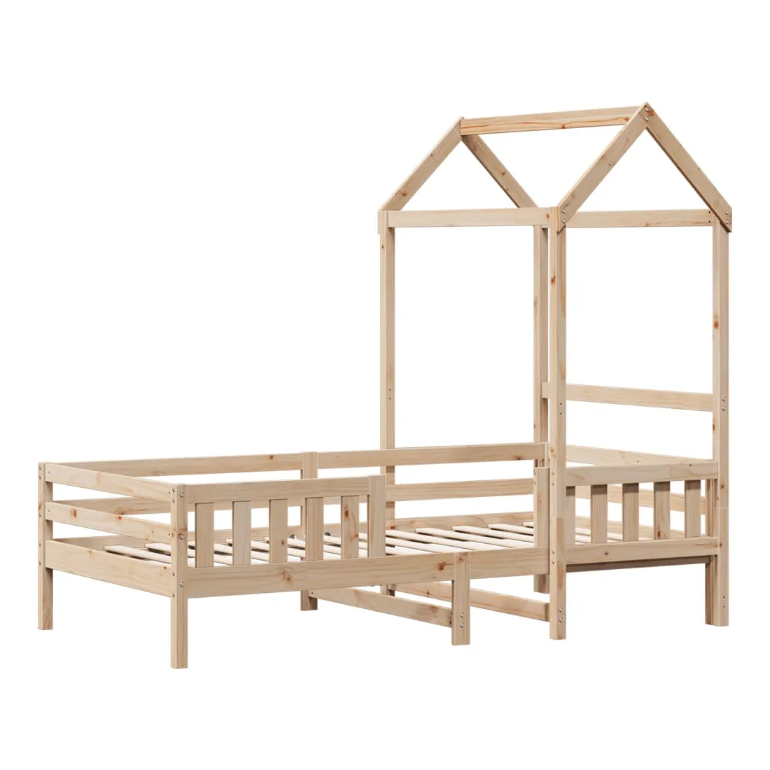 Ajoutez une touche moderne à votre chambre à coucher avec ce cadre de lit ! Il apportera une touche pratique et décorative à votre espace de vie. Bois de pin massif : le bois de pin massif est un matériau naturel magnifique. Le bois de pin a un grain droit et les nœuds donnent au matériau son aspect caractéristique et rustique.Lattes de contreplaqué : les lattes de contreplaqué assurent une bonne répartition du poids, garantissant que le matelas reste en place à chaque torsion de votre corps pendant le sommeil.Très amusant : en combinant le toit avec le lit de votre enfant, vous pouvez créer une cachette qui permettra à votre enfant de s'amuser à l'heure du coucher. Cette addition innovante non seulement sera un point focal passionnant, mais aussi apportera de la fantaisie et de l'amusement dans la chambre d'enfant.Porte latérale ouverte : le toit est doté d'une porte latérale ouverte qui permet à vos enfants d'entrer et de sortir facilement du lit.Design moderne : ajoutez un style moderne à votre décor intérieur existant ! Le design moderne présente des lignes épurées, des looks minimalistes et de la lumière naturelle dans le cadre du style de design d'intérieur. Bon à savoir :Un matelas n'est pas inclus avec ce lit. Nous offrons une sélection variée de matelas. Vous pouvez consulter notre boutique pour trouver un matelas assorti.