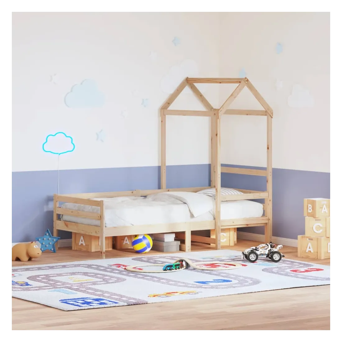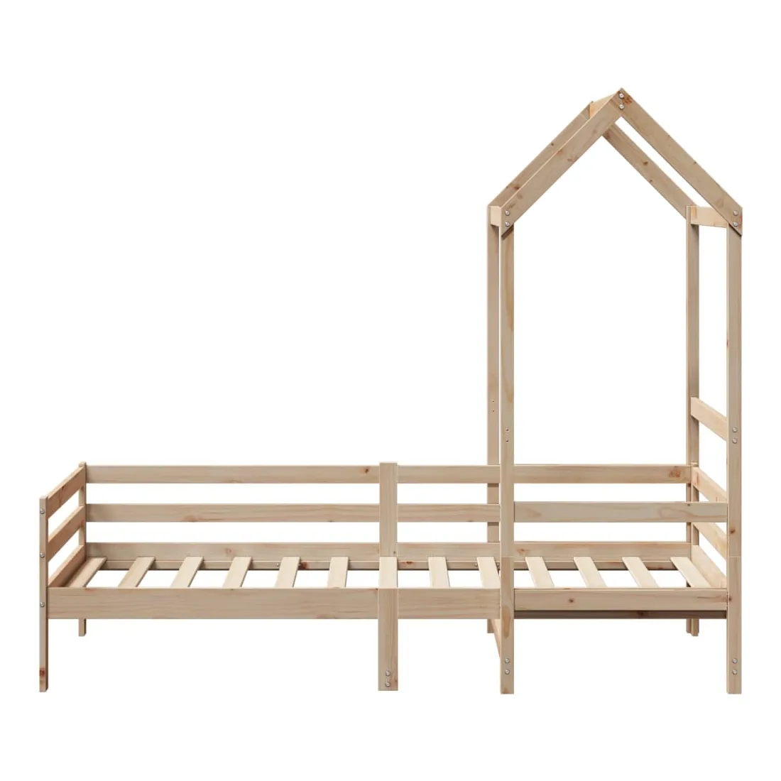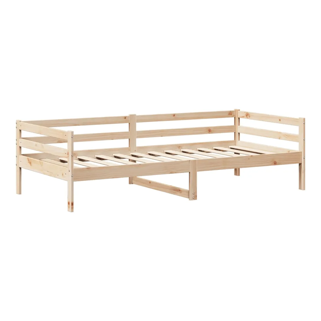 vidaXLCe lit de jour polyvalent en bois peut être utilisé comme un lit dans la chambre à coucher et est également idéal comme un canapé dans le salon. Il s'adapte parfaitement à vos différents besoins, vous offrant beaucoup d'espace pour dormir et vous reposer. Bois de pin massif : le bois de pin massif est un matériau naturel magnifique. Le bois de pin a un grain droit et les nœuds donnent au matériau son aspect caractéristique et rustique.Barres de lit sur 3 côtés : ce lit d'appoint présente un design unique sur le côté du lit, ce qui offre un sentiment de sécurité et ajoute une touche de style sophistiqué à votre intérieur.Design à lattes : le sommier à lattes en bois permet une meilleure circulation de l'air pour garder le matelas frais plus longtemps, améliorant la capacité de poids du lit et assurant la stabilité.Espace de rangement supplémentaire : profitez de l'espace sous le canapé pour ranger divers objets. Parfait pour ranger des boîtes pour organiser des vêtements, des jouets ou des couettes.Très amusant : en combinant le toit avec votre canapé-lit, vous pouvez créer une cachette qui permettra à votre enfant de s'amuser à l'heure du coucher. Cet ajout innovant sera non seulement un point focal passionnant, mais il apportera également de l'émerveillement et de l'excitation dans la chambre.Porte latérale ouverte : le toit est doté d'une porte latérale ouverte qui permet à vos enfants d'entrer et de sortir facilement du lit. Bon à savoir :Un matelas n'est pas inclus avec ce lit. Nous offrons une sélection variée de matelas. Vous pouvez consulter notre boutique pour trouver un matelas assorti.