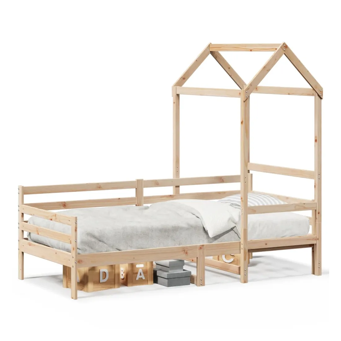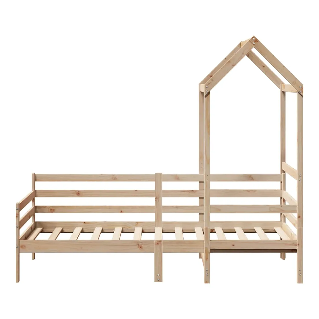 Ce lit de jour polyvalent en bois peut être utilisé comme un lit dans la chambre à coucher et est également idéal comme un canapé dans le salon. Il s'adapte parfaitement à vos différents besoins, vous offrant beaucoup d'espace pour dormir et vous reposer. Bois de pin massif : le bois de pin massif est un matériau naturel magnifique. Le bois de pin a un grain droit et les nœuds donnent au matériau son aspect caractéristique et rustique.Barres de lit sur 3 côtés : ce lit d'appoint présente un design unique sur le côté du lit, ce qui offre un sentiment de sécurité et ajoute une touche de style sophistiqué à votre intérieur.Design à lattes : le sommier à lattes en bois permet une meilleure circulation de l'air pour garder le matelas frais plus longtemps, améliorant la capacité de poids du lit et assurant la stabilité.Espace de rangement supplémentaire : profitez de l'espace sous le canapé pour ranger divers objets. Parfait pour ranger des boîtes pour organiser des vêtements, des jouets ou des couettes.Très amusant : en combinant le toit avec votre canapé-lit, vous pouvez créer une cachette qui permettra à votre enfant de s'amuser à l'heure du coucher. Cet ajout innovant sera non seulement un point focal passionnant, mais il apportera également de l'émerveillement et de l'excitation dans la chambre.Porte latérale ouverte : le toit est doté d'une porte latérale ouverte qui permet à vos enfants d'entrer et de sortir facilement du lit. Bon à savoir :Un matelas n'est pas inclus avec ce lit. Nous offrons une sélection variée de matelas. Vous pouvez consulter notre boutique pour trouver un matelas assorti.