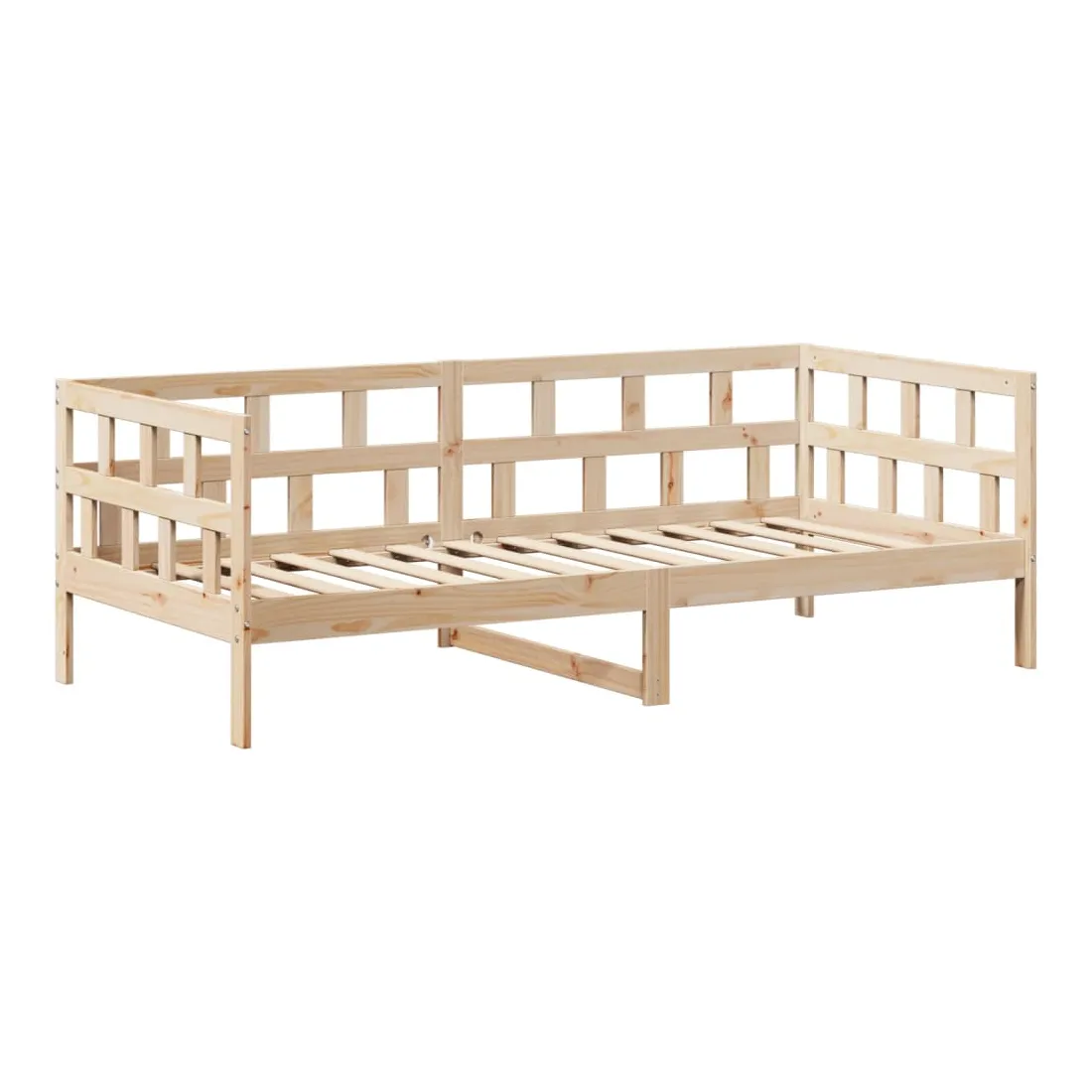 vidaXLCe lit de jour polyvalent en bois peut être utilisé comme un lit dans la chambre à coucher et est également idéal comme un canapé dans le salon. Il s'adapte parfaitement à vos différents besoins, vous offrant beaucoup d'espace pour dormir et vous reposer. Bois de pin massif : le bois de pin massif est un matériau naturel magnifique. Le bois de pin a un grain droit et les nœuds donnent au matériau son aspect caractéristique et rustique.Barres de lit sur 3 côtés : ce lit d'appoint présente un design unique sur le côté du lit, ce qui offre un sentiment de sécurité et ajoute une touche de style sophistiqué à votre intérieur.Design à lattes : le sommier à lattes en bois permet une meilleure circulation de l'air pour garder le matelas frais plus longtemps, améliorant la capacité de poids du lit et assurant la stabilité.Espace de rangement supplémentaire : profitez de l'espace sous le canapé pour ranger divers objets. Parfait pour ranger des boîtes pour organiser des vêtements, des jouets ou des couettes.Très amusant : en combinant le toit avec votre canapé-lit, vous pouvez créer une cachette qui permettra à votre enfant de s'amuser à l'heure du coucher. Cette addition innovante non seulement sera un point focal passionnant, mais aussi apportera de la fantaisie et de l'amusement dans la chambre.Porte latérale ouverte : le toit est doté d'une porte latérale ouverte qui permet à vos enfants d'entrer et de sortir facilement du lit. Bon à savoir :Un matelas n'est pas inclus avec ce lit. Nous offrons une sélection variée de matelas. Vous pouvez consulter notre boutique pour trouver un matelas assorti.