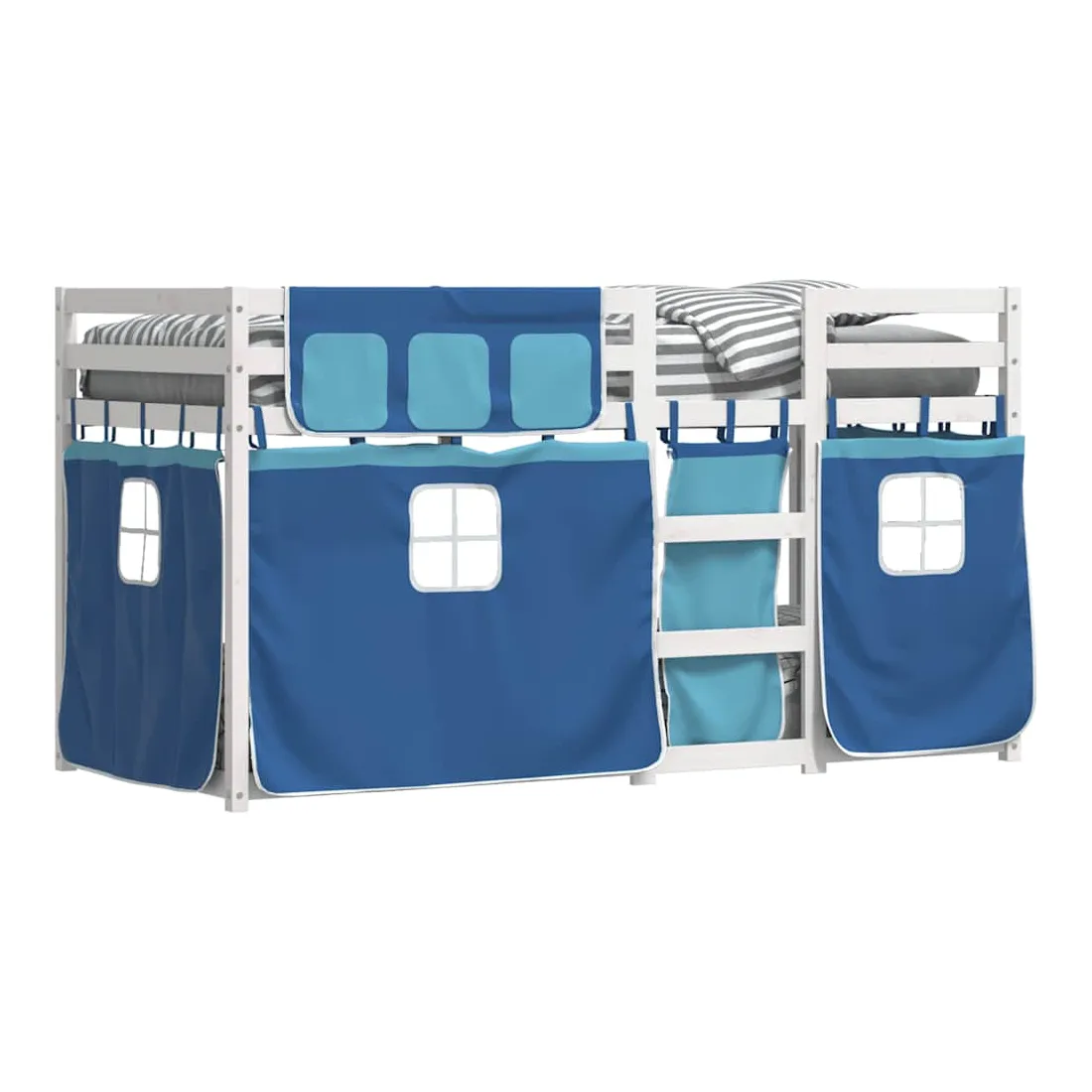 Ce lit superposé en bois est élégant et fonctionnel, ce qui en fait un supplément parfait à toute pièce dont l'espace est limité. Bois de pin massif : ce lit superposé est fabriqué en bois de pin massif pour plus de stabilité et de durabilité. Le bois de pin a un grain droit et les nœuds donnent au matériau son aspect rustique caractéristique.Très amusant : vous pouvez combiner les rideaux avec le lit superposé bas pour créer la base secrète de votre enfant, ce qui permet de s’amuser à l’heure du coucher et d’ajouter un point d'intérêt à la chambre à coucher !Barrières de sécurité : le lit supérieur est équipé de garde-corps de sécurité sur les 4 côtés, afin que votre enfant puisse dormir sans craindre de tomber.Échelle pratique : ce lit superposé double est doté d'une échelle qui permet de monter et de descendre dans et du lit en toute simplicité. Elle apporte également de la joie et transforme leur chambre en terrain de jeu intérieur. Bon à savoir :Un matelas n'est pas inclus avec ce lit. Nous offrons une sélection variée de matelas. Vous pouvez consulter notre boutique pour trouver un matelas assorti. Attention :Pour éviter qu'il ne bascule, ce produit doit être utilisé avec le dispositif de fixation murale fourni.