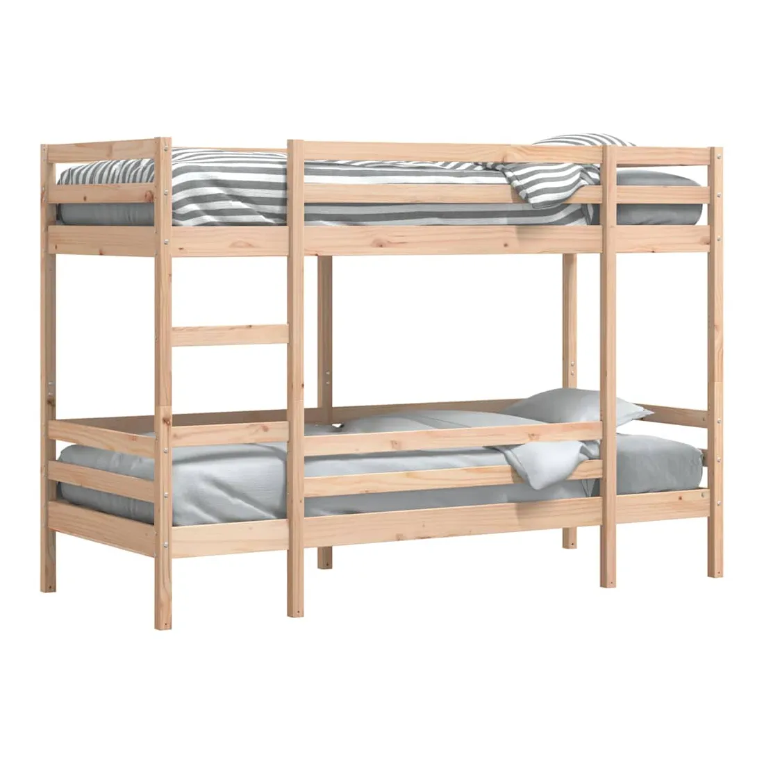 Ce lit superposé en bois est élégant et fonctionnel, ce qui en fait un supplément parfait à toute pièce dont l'espace est limité. Robuste et stable : le bois de pin massif est connu pour sa résistance et sa durabilité. Ses grains droits et ses nœuds distinctifs contribuent à son charme rustique.Design sûr : le lit surélevé est conçu dans un souci de sécurité. Il comprend des garde-corps qui empêchent l'utilisateur de rouler pendant son sommeil.Échelle pratique : l'échelle de ce lit superposé facilite et sécurise le sommeil à l'étage supérieur et offre une sécurité et une stabilité suffisantes.Convient aux espaces limités : le lit superposé en bois massif est un excellent choix pour toute pièce dont l'espace est limité. Il fournit deux lits individuels avec un design compact. Bon à savoir :La livraison comprend uniquement les cadres de lit. Les matelas ne sont pas inclus. Vous pouvez consulter notre boutique pour trouver les matelas assortis. Attention :Pour éviter qu'il ne bascule, ce produit doit être utilisé avec le dispositif de fixation murale fourni.