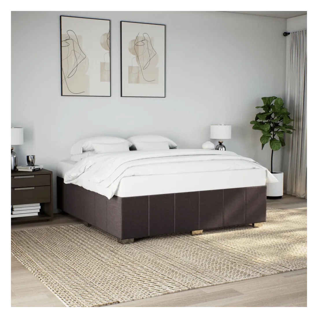 Cadre de lit sans matelas marron foncé 180x200 cm tissu