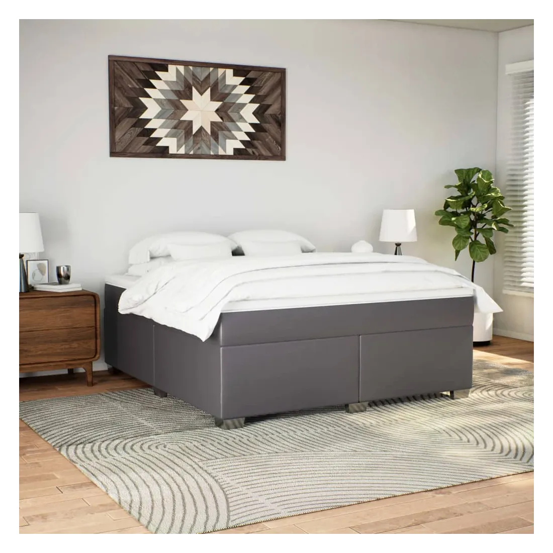 Sommier à lattes de lit avec matelas Gris 180x200 cm Similicuir