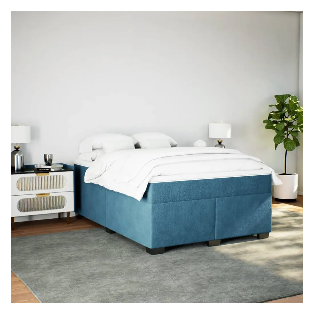Sommier à lattes de lit et matelas Bleu foncé 160x200cm Velours