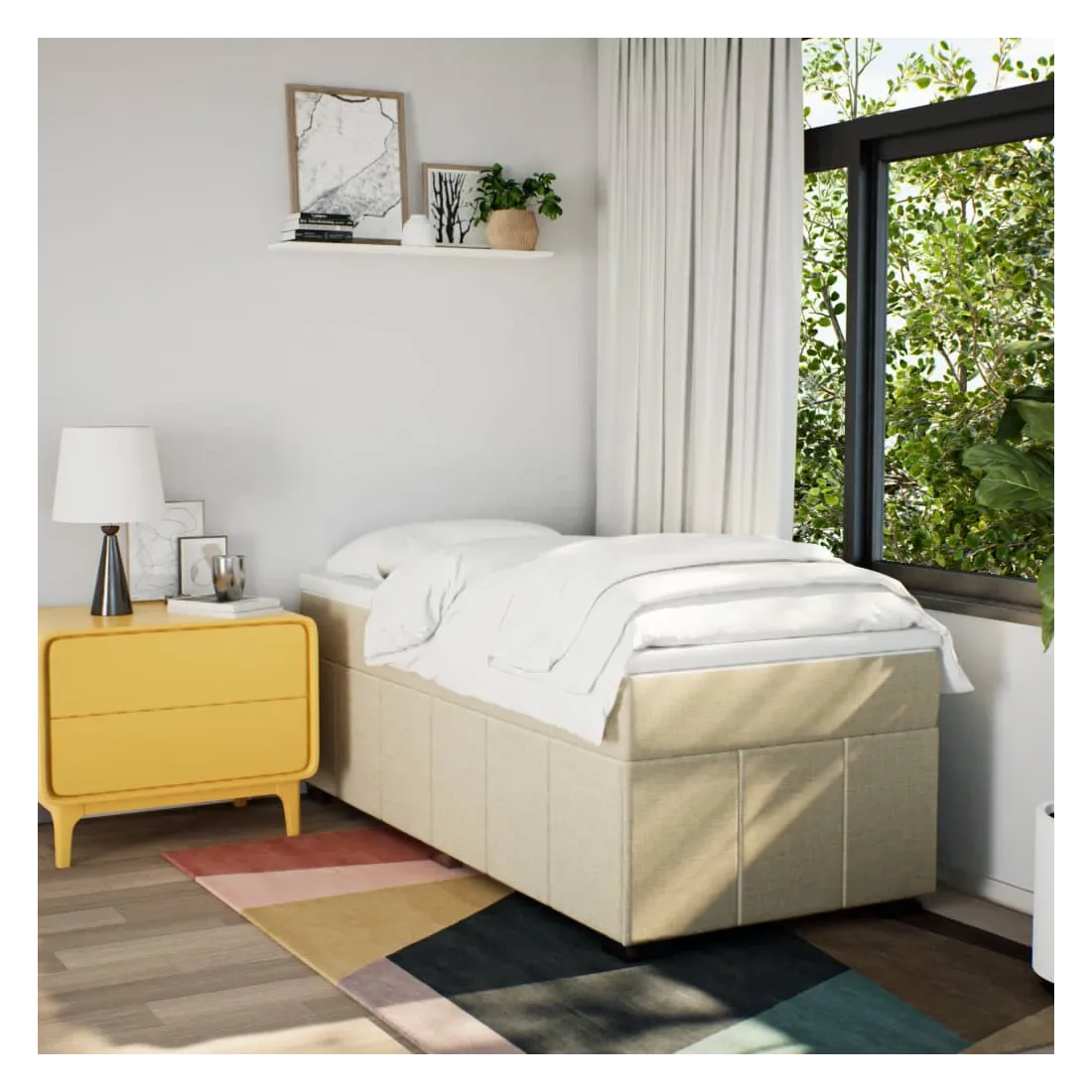 Utilisez ce lit à sommier pour profiter d'une nuit de sommeil réparatrice ! Il vous offre une relaxation maximale et un sommeil agréable. Matériau doux et durable : le tissu en polyester allie douceur, respirabilité et durabilité, vous garantissant un confort et une convivialité ultimes.Matelas à ressorts ensachés : ce matelas à ressorts ensachés comporte des ressorts ensachés individuels qui fonctionnent indépendamment pour offrir un soutien personnalisé en réagissant uniquement à la pression exercée dans chaque zone. Cette conception empêche « l'enroulement » et réduit le transfert de mouvement par rapport aux matelas traditionnels à ressorts ouverts. Chaque ressort ensaché soutient le corps individuellement.Surmatelas confortable : ce surmatelas améliore le soutien et le confort grâce à sa surface douce et respirante, tout en prolongeant la durée de vie de votre matelas. Sa housse amovible permet un lavage facile, ce qui facilite l'entretien.Lattes pour un soutien optimal : le cadre de lit est complété par des lattes pour offrir un soutien et une respirabilité essentiels à votre matelas.Pieds stables et durables : ce lit est soutenu par des pieds robustes, ce qui garantit sa stabilité, sa sécurité et sa fermeté. Bon à savoir :Pour des raisons d'hygiène, le matelas ne peut pas être retourné si l'emballage est retiré ou ouvert.