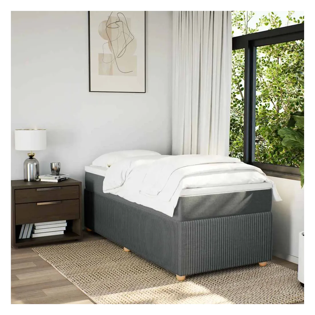 Utilisez ce lit à sommier pour profiter d'une nuit de sommeil réparatrice ! Il vous offre une relaxation maximale et un sommeil agréable. Matériau doux et durable : le tissu en polyester allie douceur, respirabilité et durabilité, vous garantissant un confort et une convivialité ultimes.Matelas à ressorts ensachés : ce matelas à ressorts ensachés comporte des ressorts ensachés individuels qui fonctionnent indépendamment pour offrir un soutien personnalisé en réagissant uniquement à la pression exercée dans chaque zone. Cette conception empêche « l'enroulement » et réduit le transfert de mouvement par rapport aux matelas traditionnels à ressorts ouverts. Chaque ressort ensaché soutient le corps individuellement.Surmatelas confortable : ce surmatelas améliore le soutien et le confort grâce à sa surface douce et respirante, tout en prolongeant la durée de vie de votre matelas. Sa housse amovible permet un lavage facile, ce qui facilite l'entretien.Lattes pour un soutien optimal : le cadre de lit est complété par des lattes pour offrir un soutien et une respirabilité essentiels à votre matelas.Pieds stables et durables : ce lit est soutenu par des pieds robustes, ce qui garantit sa stabilité, sa sécurité et sa fermeté. Bon à savoir :Pour des raisons d'hygiène, le matelas ne peut pas être retourné si l'emballage est retiré ou ouvert.