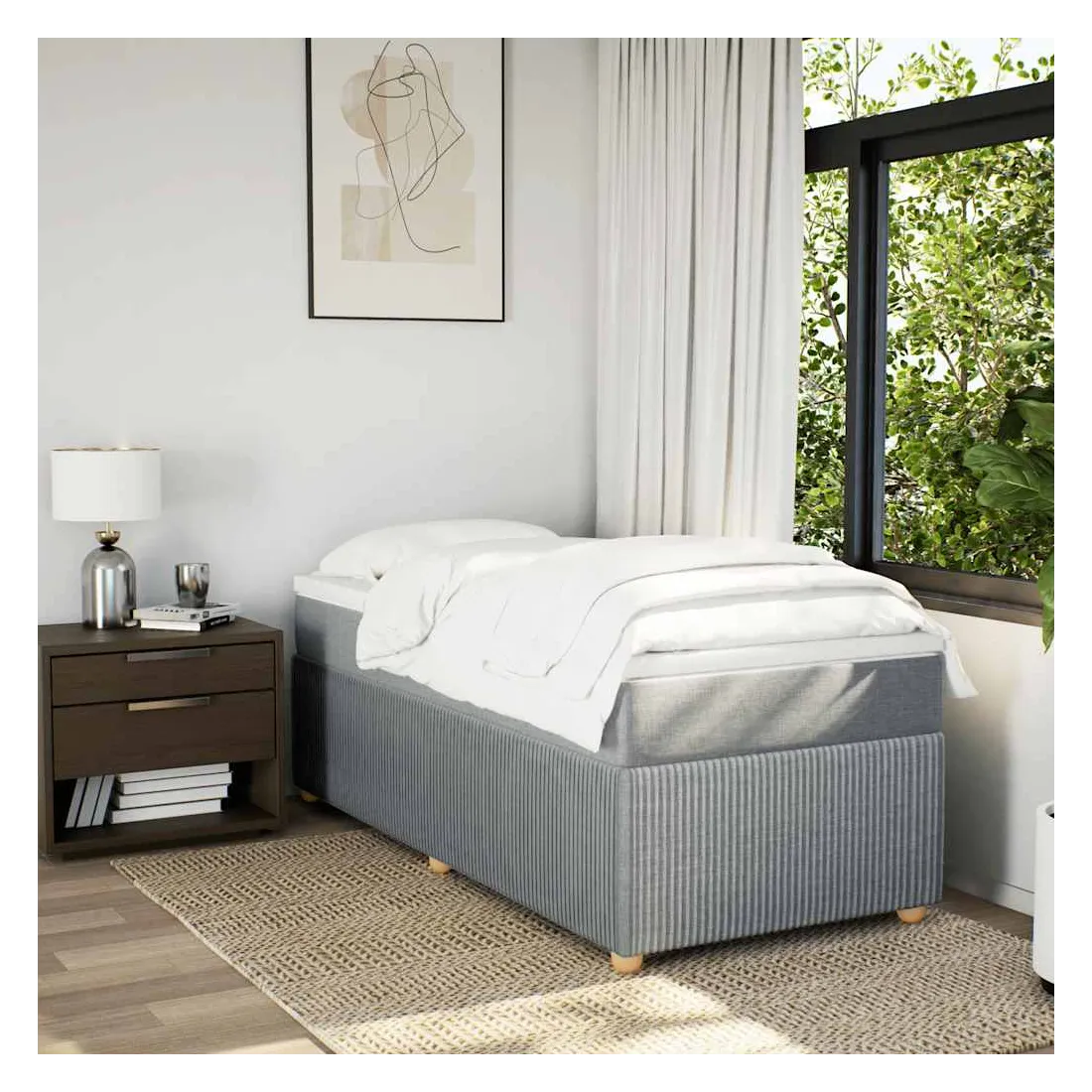 Utilisez ce lit à sommier pour profiter d'une nuit de sommeil réparatrice ! Il vous offre une relaxation maximale et un sommeil agréable. Matériau doux et durable : le tissu en polyester allie douceur, respirabilité et durabilité, vous garantissant un confort et une convivialité ultimes.Matelas à ressorts ensachés : ce matelas à ressorts ensachés comporte des ressorts ensachés individuels qui fonctionnent indépendamment pour offrir un soutien personnalisé en réagissant uniquement à la pression exercée dans chaque zone. Cette conception empêche « l'enroulement » et réduit le transfert de mouvement par rapport aux matelas traditionnels à ressorts ouverts. Chaque ressort ensaché soutient le corps individuellement.Surmatelas confortable : ce surmatelas améliore le soutien et le confort grâce à sa surface douce et respirante, tout en prolongeant la durée de vie de votre matelas. Sa housse amovible permet un lavage facile, ce qui facilite l'entretien.Lattes pour un soutien optimal : le cadre de lit est complété par des lattes pour offrir un soutien et une respirabilité essentiels à votre matelas.Pieds stables et durables : ce lit est soutenu par des pieds robustes, ce qui garantit sa stabilité, sa sécurité et sa fermeté. Bon à savoir :Pour des raisons d'hygiène, le matelas ne peut pas être retourné si l'emballage est retiré ou ouvert.