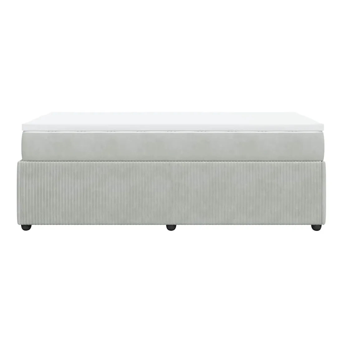 Utilisez ce lit à sommier pour profiter d'une nuit de sommeil réparatrice ! Il vous offre une relaxation maximale et un sommeil agréable. Velours doux : le velours est un tissu doux et luxueux qui se reconnaît à son tas dense de fibres uniformément coupées qui ont une touche lisse. Le tissu en velours présente un toucher doux distinctif, ce qui le rend confortable au toucher.Matelas à ressorts ensachés : ce matelas à ressorts ensachés comporte des ressorts ensachés individuels qui fonctionnent indépendamment pour offrir un soutien personnalisé en réagissant uniquement à la pression exercée dans chaque zone. Cette conception empêche « l'enroulement » et réduit le transfert de mouvement par rapport aux matelas traditionnels à ressorts ouverts. Chaque ressort ensaché soutient le corps individuellement.Surmatelas confortable : ce surmatelas améliore le soutien et le confort grâce à sa surface douce et respirante, tout en prolongeant la durée de vie de votre matelas. Sa housse amovible permet un lavage facile, ce qui facilite l'entretien.Lattes pour un soutien optimal : le cadre de lit est complété par des lattes pour offrir un soutien et une respirabilité essentiels à votre matelas.Pieds stables et durables : ce lit est soutenu par des pieds robustes, ce qui garantit sa stabilité, sa sécurité et sa fermeté. Bon à savoir :Pour des raisons d'hygiène, le matelas ne peut pas être retourné si l'emballage est retiré ou ouvert.
