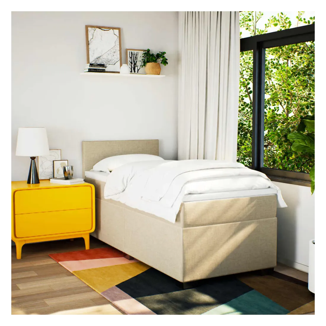 Utilisez ce lit à sommier pour profiter d'une nuit de sommeil réparatrice ! Il vous offre une relaxation maximale et un sommeil agréable. Matériau doux et durable : le tissu en polyester allie douceur, respirabilité et durabilité, vous garantissant un confort et une convivialité ultimes.Matelas à ressorts ensachés : ce matelas à ressorts ensachés comporte des ressorts ensachés individuels qui fonctionnent indépendamment pour offrir un soutien personnalisé en réagissant uniquement à la pression exercée dans chaque zone. Cette conception empêche « l'enroulement » et réduit le transfert de mouvement par rapport aux matelas traditionnels à ressorts ouverts. Chaque ressort ensaché soutient le corps individuellement.Surmatelas confortable : ce surmatelas améliore le soutien et le confort grâce à sa surface douce et respirante, tout en prolongeant la durée de vie de votre matelas. Sa housse amovible permet un lavage facile, ce qui facilite l'entretien.Excellent soutien : la tête de lit vous offre un excellent soutien du dos lorsque vous êtes assis dans votre lit pour lire ou regarder la télévision.Pieds stables et durables : ce lit est soutenu par des pieds robustes, ce qui garantit sa stabilité, sa sécurité et sa fermeté. Bon à savoir :Pour des raisons d'hygiène, le matelas ne peut pas être retourné si l'emballage est retiré ou ouvert.