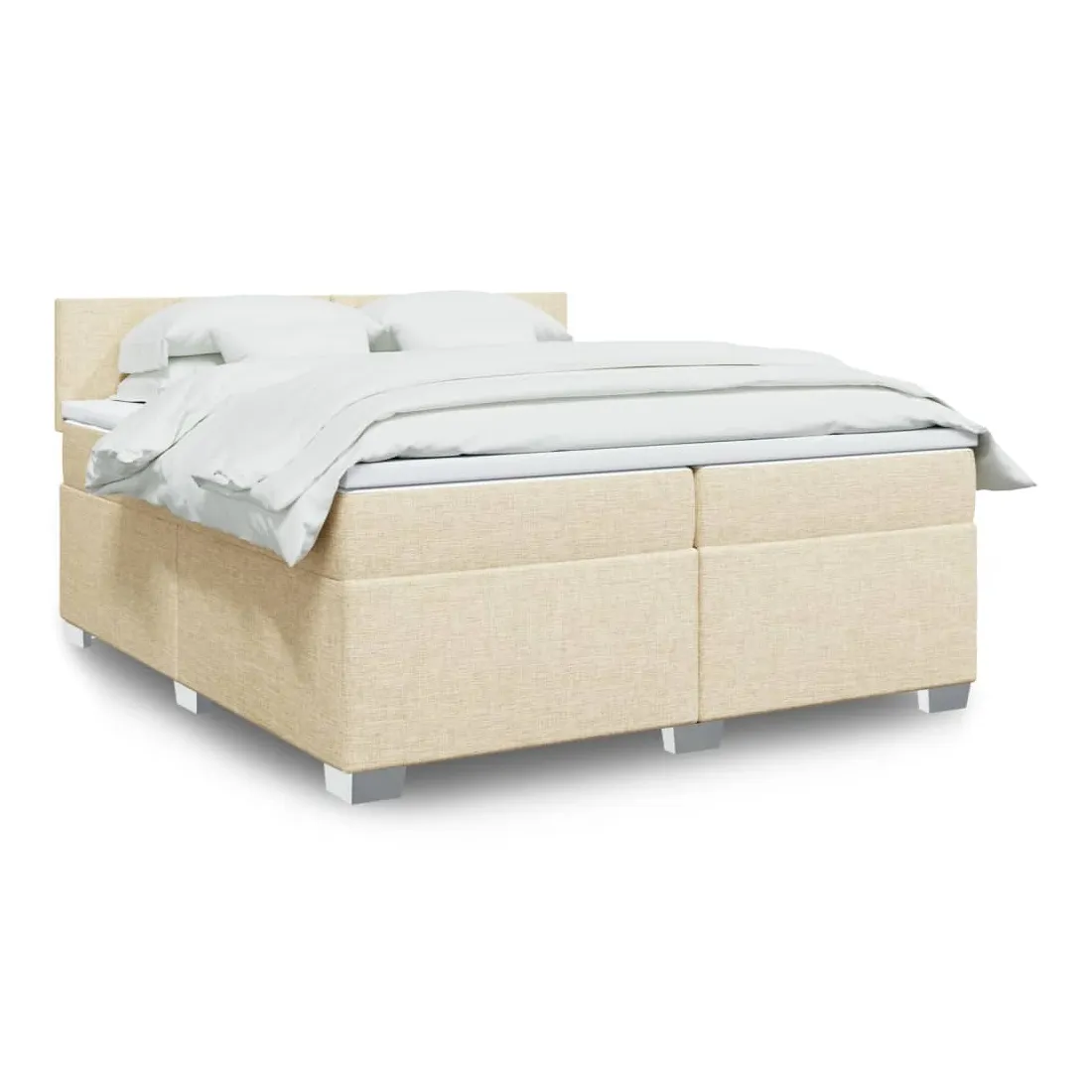 Sommier à lattes de lit avec matelas Crème 200x200 cm Tissu