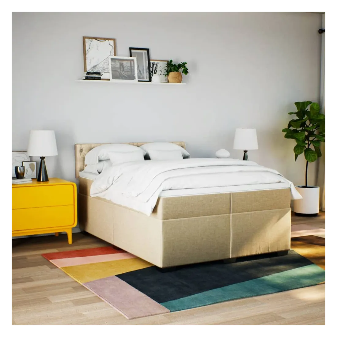 Sommier à lattes de lit avec matelas Crème 200x200 cm Tissu