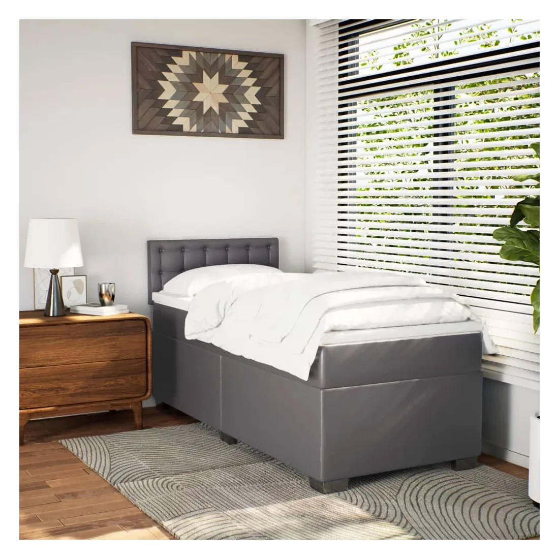 Utilisez ce lit à sommier pour profiter d'une nuit de sommeil réparatrice ! Il vous offre une relaxation maximale et un sommeil agréable. Similicuir durable : le similicuir de qualité supérieure est un matériau très durable. Il est résistant aux taches, ce qui le rend facile à nettoyer avec un chiffon humide. La surface lisse donne également un aspect luxueux et la beauté du cuir véritable.Matelas à ressorts ensachés : ce matelas à ressorts ensachés comporte des ressorts ensachés individuels qui fonctionnent indépendamment pour offrir un soutien personnalisé en réagissant uniquement à la pression exercée dans chaque zone. Cette conception empêche « l'enroulement » et réduit le transfert de mouvement par rapport aux matelas traditionnels à ressorts ouverts. Chaque ressort ensaché soutient le corps individuellement.Surmatelas confortable : ce surmatelas améliore le soutien et le confort grâce à sa surface douce et respirante, tout en prolongeant la durée de vie de votre matelas. Sa housse amovible permet un lavage facile, ce qui facilite l'entretien.Excellent soutien : la tête de lit vous offre un excellent soutien du dos lorsque vous êtes assis dans votre lit pour lire ou regarder la télévision.Pieds stables et durables : ce lit est soutenu par des pieds robustes, ce qui garantit sa stabilité, sa sécurité et sa fermeté. Bon à savoir :Pour des raisons d'hygiène, le matelas ne peut pas être retourné si l'emballage est retiré ou ouvert.