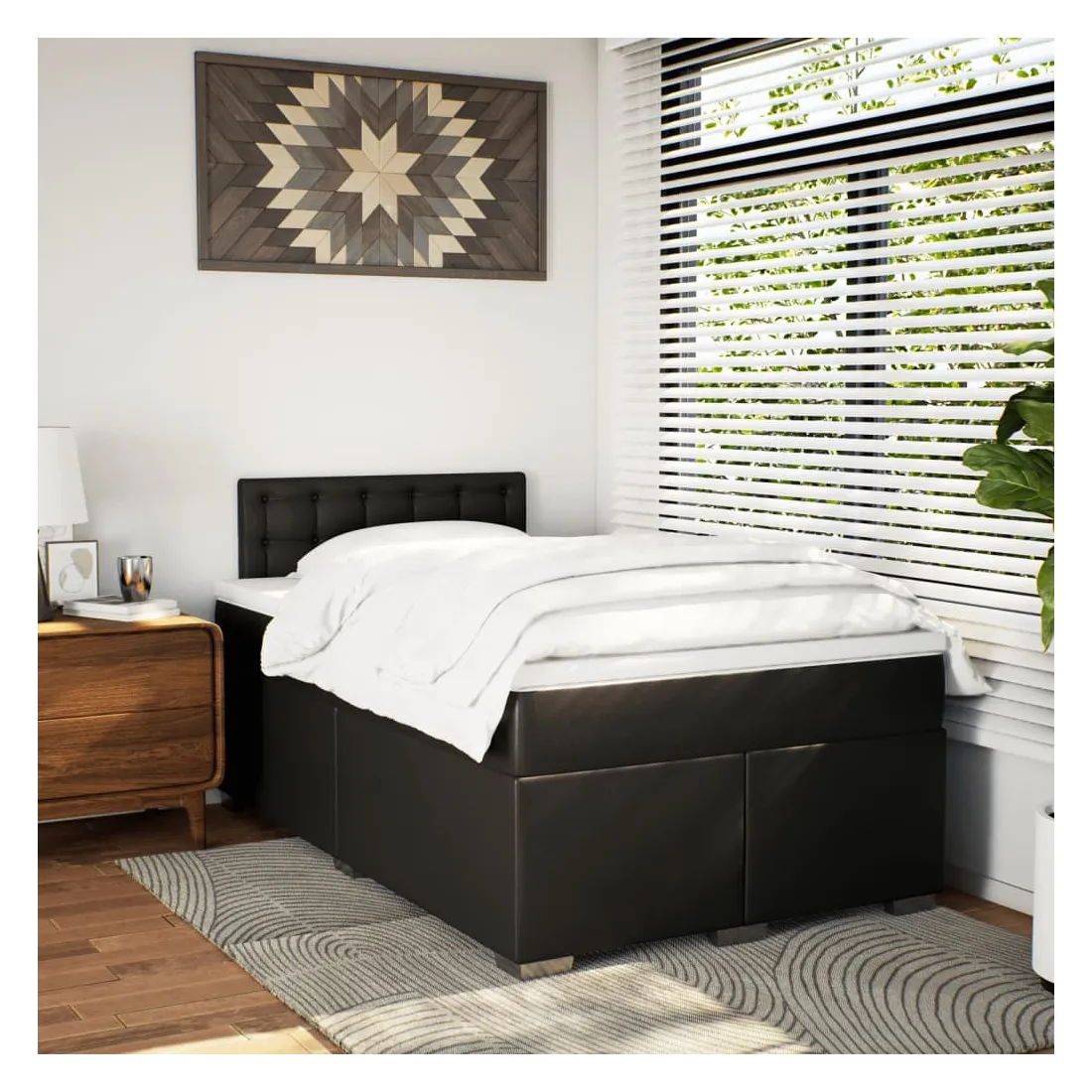 Utilisez ce lit à sommier pour profiter d'une nuit de sommeil réparatrice ! Il vous offre une relaxation maximale et un sommeil agréable. Similicuir durable : le similicuir de qualité supérieure est un matériau très durable. Il est résistant aux taches, ce qui le rend facile à nettoyer avec un chiffon humide. La surface lisse donne également un aspect luxueux et la beauté du cuir véritable.Matelas à ressorts ensachés : ce matelas à ressorts ensachés comporte des ressorts ensachés individuels qui fonctionnent indépendamment pour offrir un soutien personnalisé en réagissant uniquement à la pression exercée dans chaque zone. Cette conception empêche « l'enroulement » et réduit le transfert de mouvement par rapport aux matelas traditionnels à ressorts ouverts. Chaque ressort ensaché soutient le corps individuellement.Surmatelas confortable : ce surmatelas améliore le soutien et le confort grâce à sa surface douce et respirante, tout en prolongeant la durée de vie de votre matelas. Sa housse amovible permet un lavage facile, ce qui facilite l'entretien.Excellent soutien : la tête de lit vous offre un excellent soutien du dos lorsque vous êtes assis dans votre lit pour lire ou regarder la télévision.Pieds stables et durables : ce lit est soutenu par des pieds robustes, ce qui garantit sa stabilité, sa sécurité et sa fermeté. Bon à savoir :Pour des raisons d'hygiène, le matelas ne peut pas être retourné si l'emballage est retiré ou ouvert.