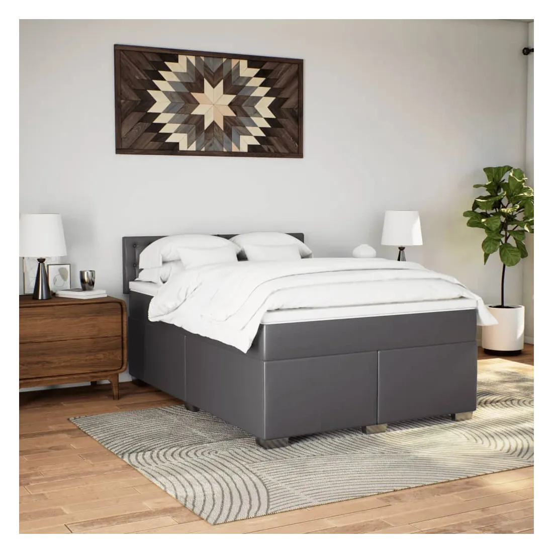 Sommier à lattes de lit avec matelas Gris 140x200 cm Similicuir